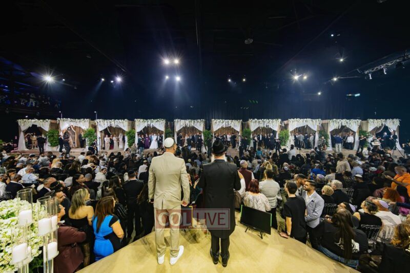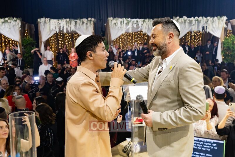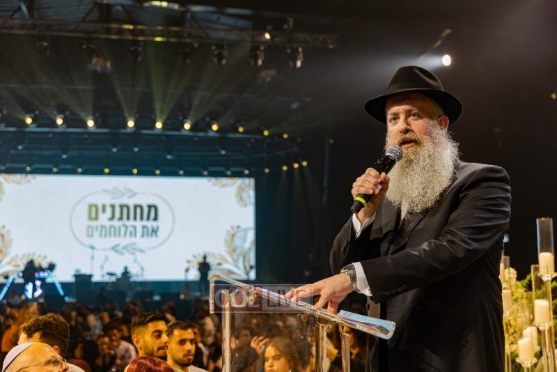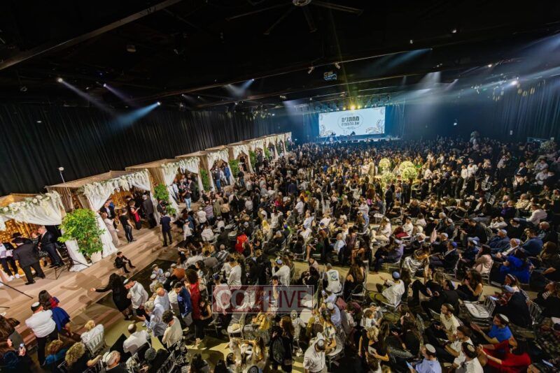 Broadcast around Israel, the huge wedding celebration included words of inspiration by Tel Aviv Head Shliach Rabbi Yosef Gerlitzky and Birchas Kohanim by Rabbi Elad Cohen, a Shliach in Kfar Saba.