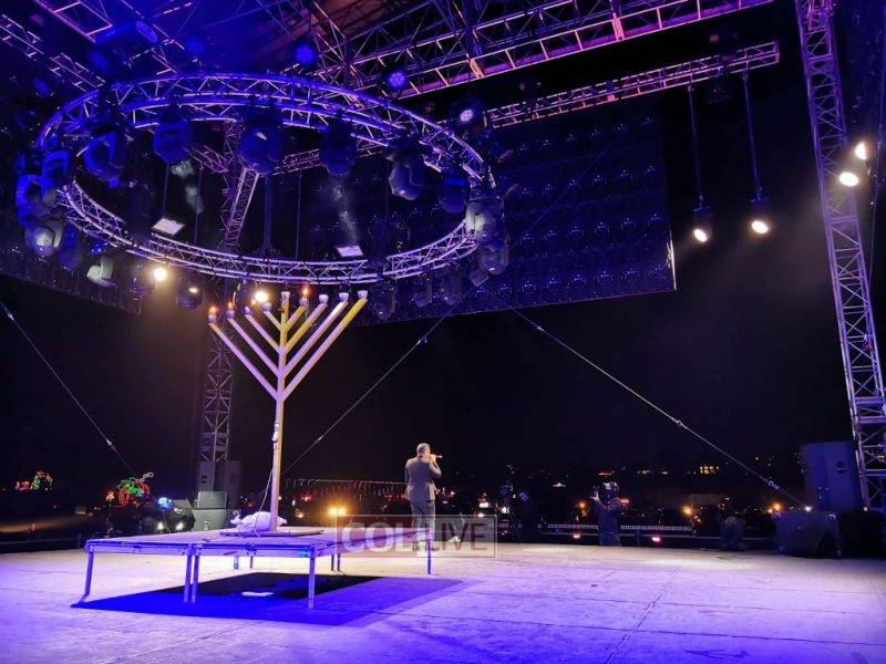 Over 1600 people in over 400 vehicles gathered at the Del Mar Fairgrounds in S. Diego, CA for a Chanukah Spectacular event featuring superstar singer Gad Elbaz.