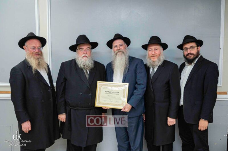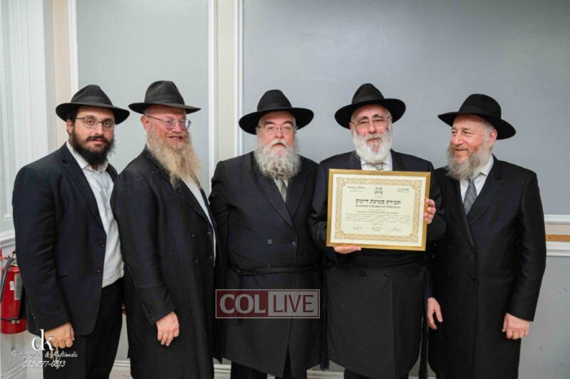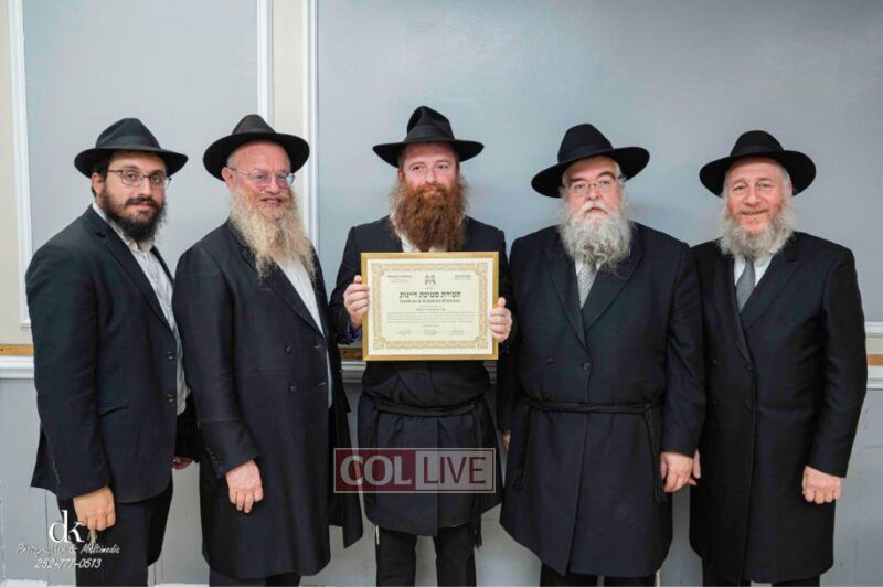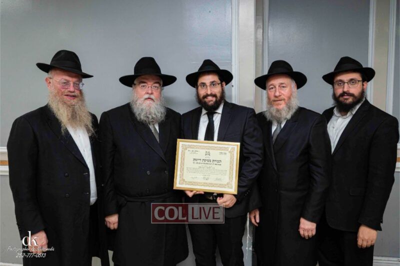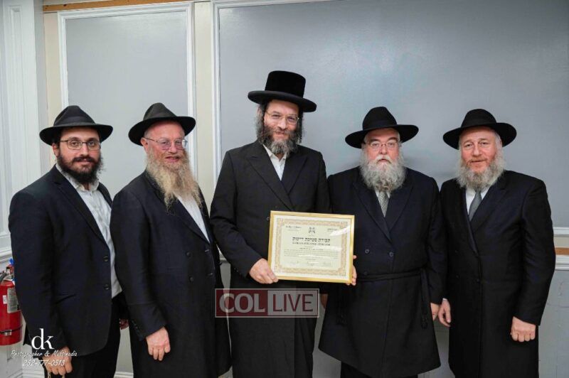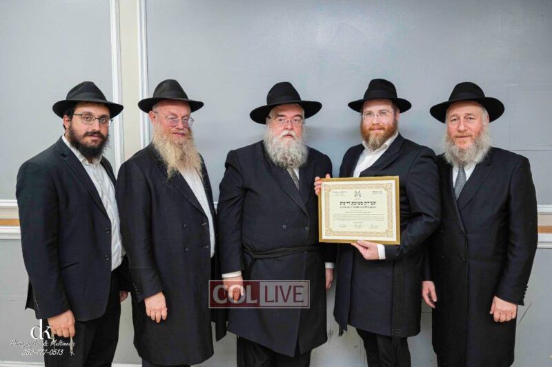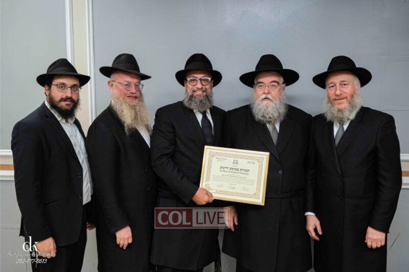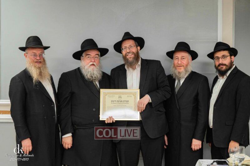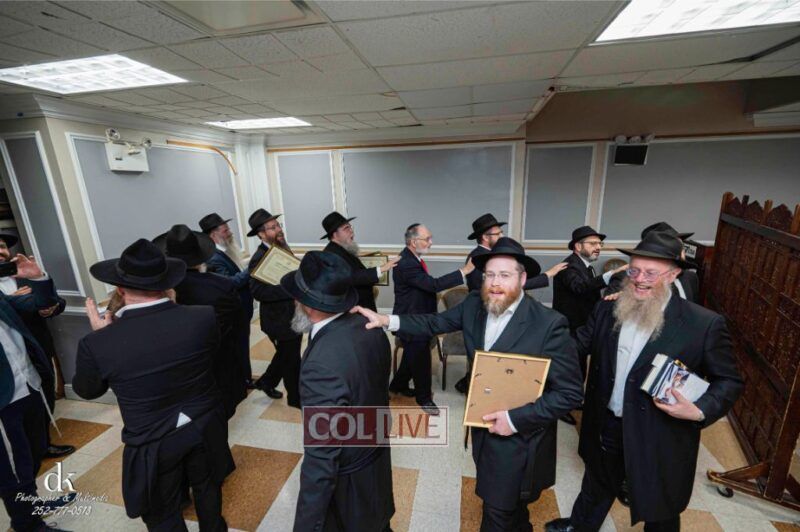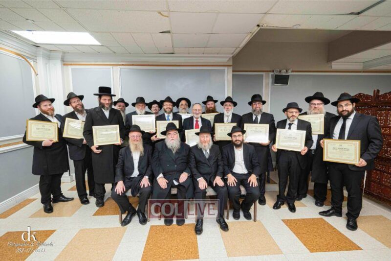 The event, taking place in Crown Heights just before Rosh Hashana, was attended by Rabbonim and anash, celebrating this tremendous milestone and learning achievement of these new Dayanim.