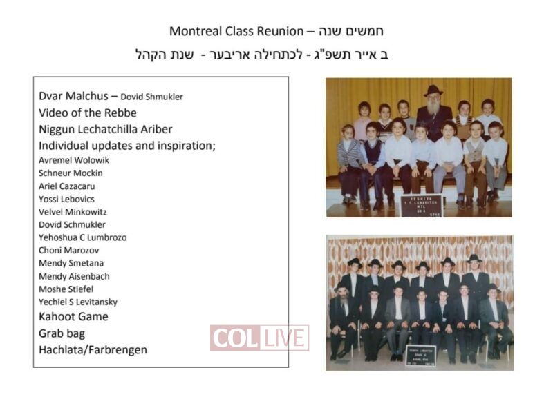 The elementary school class that graduated in 1989 from the Rabbinical College of Canada – Yeshiva Tomchei Temimim Lubavitch of Montreal reunited in their hometown this past weekend.
