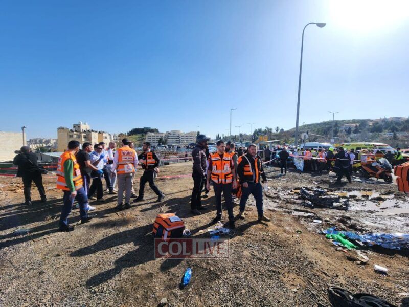 Magon Dovid Adom EMT Shraga Rosenthal said on the attack, “The scene was terrible when we arrived. We saw a vehicle near the bus stop that hit pedestrians that were waiting. We saw 6 victims near each other. 2 of them were 6-year-old children who were unconscious with severe multi-trauma injuries.