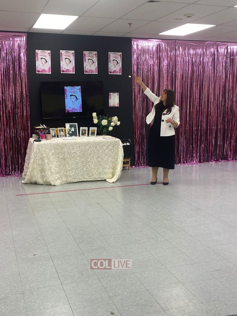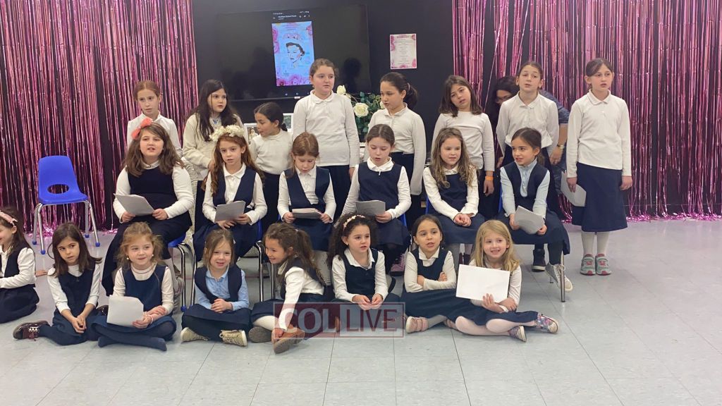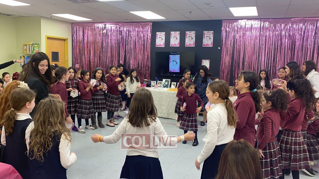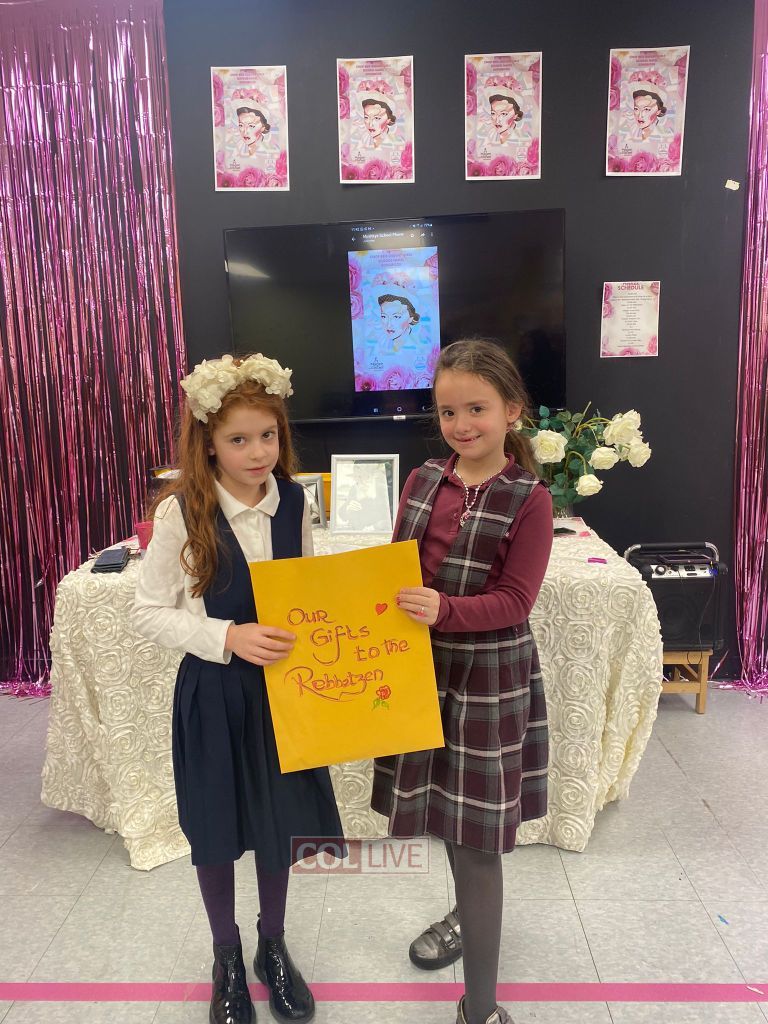 The program began with Mrs. Tamar Chayempour, the school’s director, sharing first-hand stories about the Rebbetzin with the students. The lunchroom was beautifully decorated with art of the Rebbetzin and was filled with pink roses, one of the Rebbetzin’s favorite flowers.