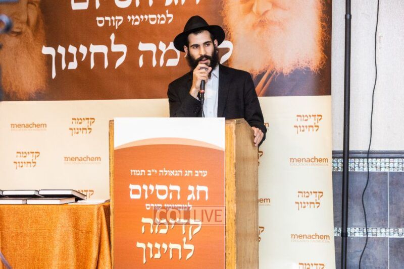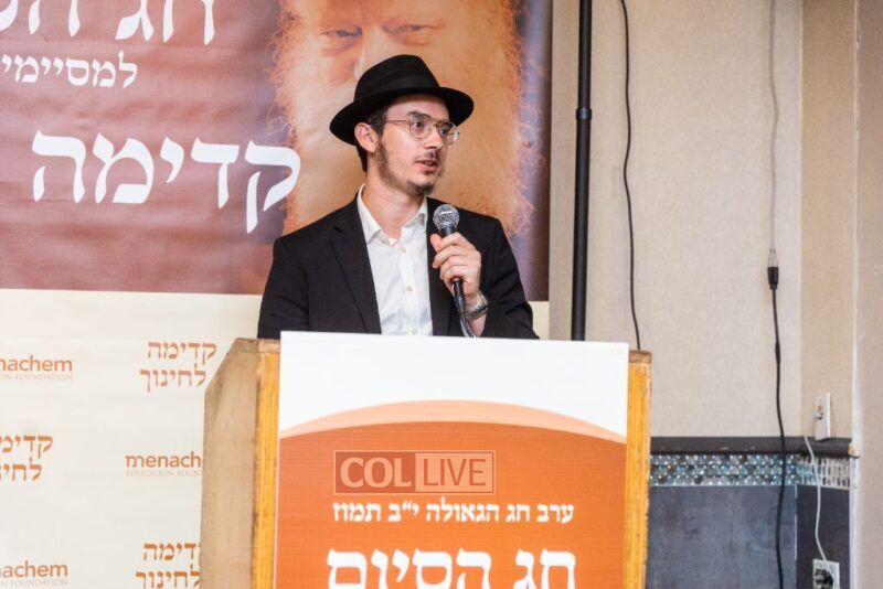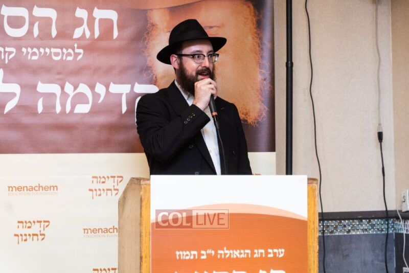 In the spirit of a Hakhel gathering, attendees heard a beautiful Dvar Torah which connected Yud Bais Tammuz and Chinuch, by Kadima L’Chinuch graduate, Rabbi Yehoshua Resin. He eloquently expressed how the essence of Chinuch is when a Melamid transmits the essence of Torah, a level beyond understanding, to his students, so that they feel a deep connection and Kabolas Ol to Hashem and His Torah.