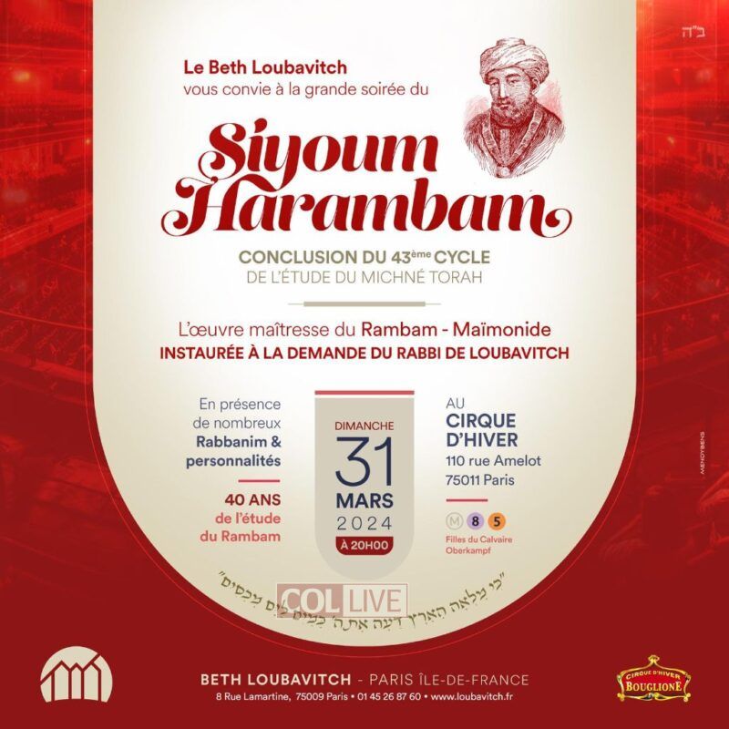 Over 2,000 people attended the grand ceremony in Paris, France, concluding the 43rd cycle of the daily study of Mishne Torah, the digest of halachos written by the Rambam.