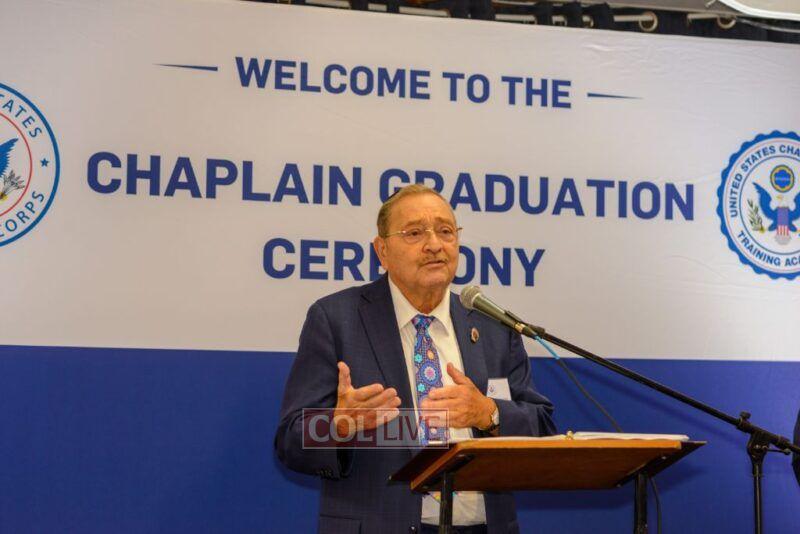 The evening ended with an accelerated and joyous roll call of all 230 chaplains by Chaplain Weingarten. Graduates were then presented with their diplomas and congratulated by USCC Administrator, Chaplain Chalmers Beard.