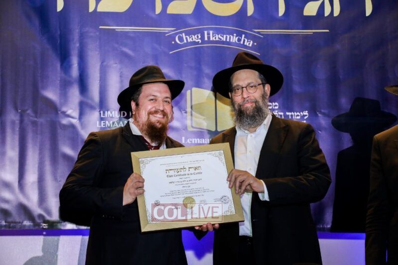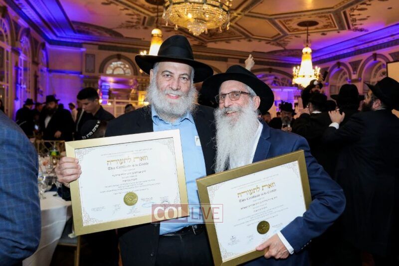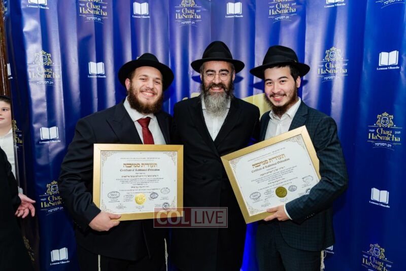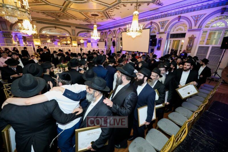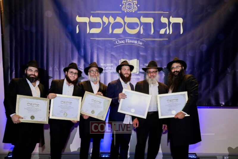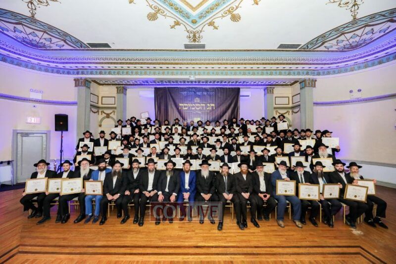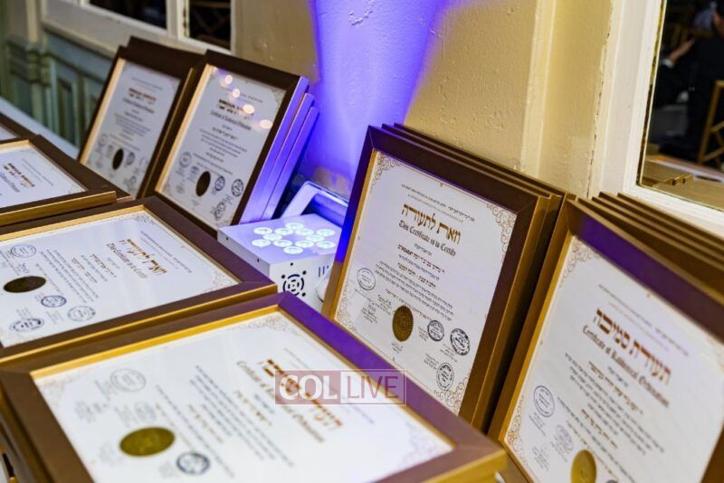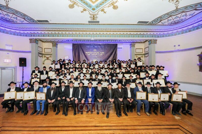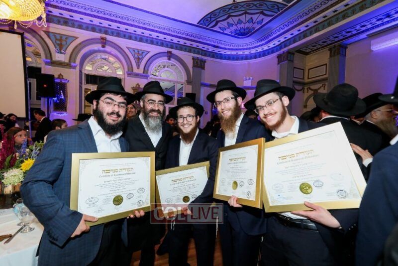 About 500 people participated in the impressive “Chag Ha’Semicha” event which took place last Wednesday, 5 Tishrei, in Oholei Torah’s hall in Crown Heights. Certificates were given out to about 270 students who successfully completed the curriculum for Semicha Issur/Heter, Hilchos Shabbos, Siddur Chuppa v’Kiddushin, Mikvaos, Shechita, Orach Chaim, Rav Kehilla, and Hadrochas Chassanim.