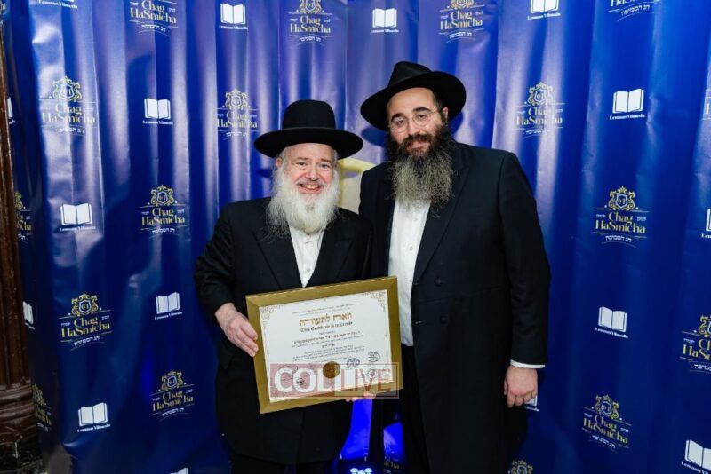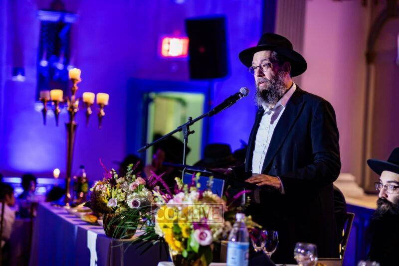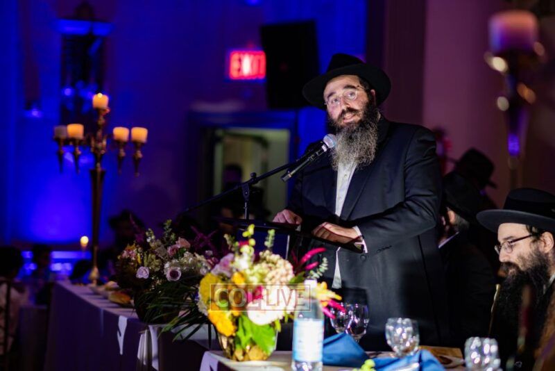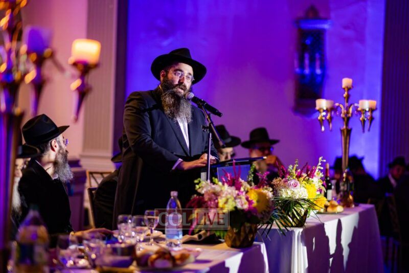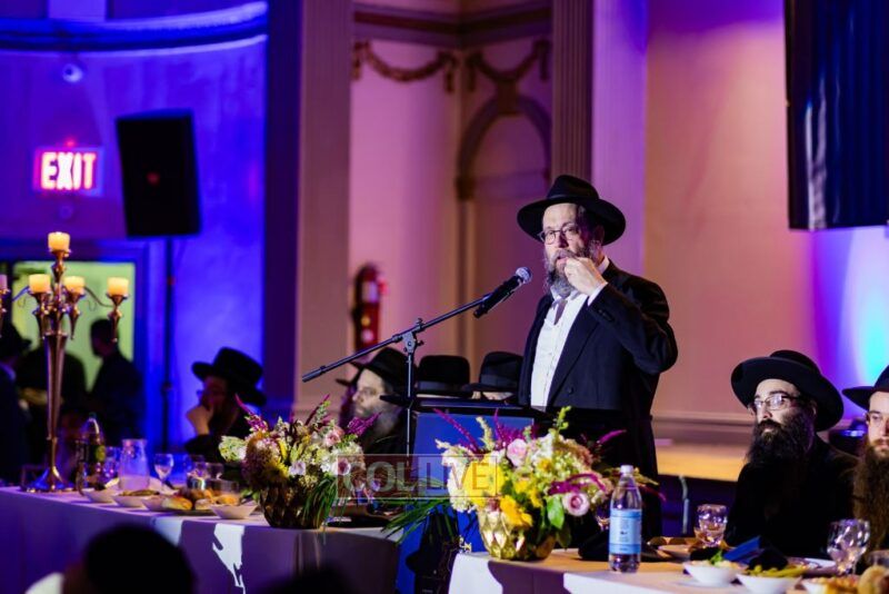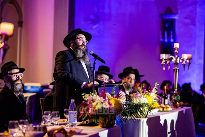 The event began with the emcee, Rabbi Chaim Yisroel Wilhelm, inviting Rabbi Menachem Mendel Yusevitz, menahel of Machon Taharas Ha’Bayis, to say the Rebbe’s chapter of Tehillim. Then the audience watched a video of the Rebbe, a sicha in which the Rebbe spoke about the importance of Torah study.