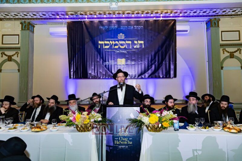After the seudas mitzva, as befitting the honor of the Torah and those who learn it, the Mara d’Asra and member of the Crown Heights Beis Din, Rabbi Yosef Yeshaya Braun, was invited to speak. Despite the busyness at the offices of the Badatz erev Yom Tov, he attended this significant event. He connected the Chabad minhag not to say Selichos during the Aseres Yimei Teshuva to the investment made by the talmidim in studying and being tested over the previous year.