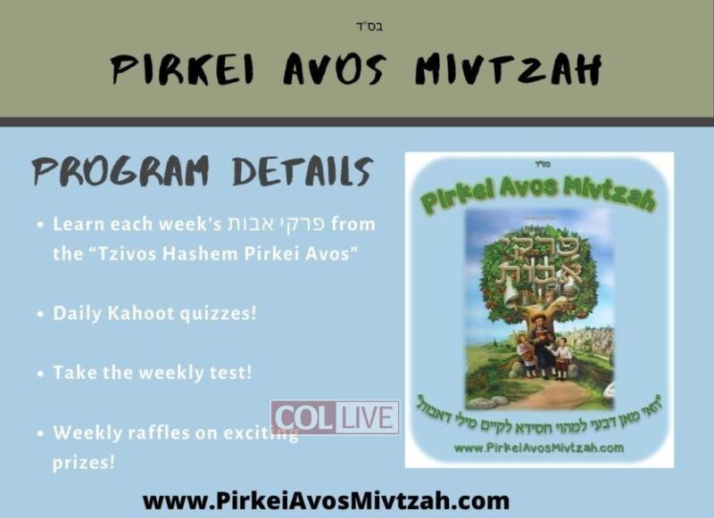 The Mivtzah encourages students to study the weekly Pirkei Avos, with an additional track offering the opportunity to delve deeper through insights featured in the Tzivos Hashem Weiss edition Pirkei Avos.