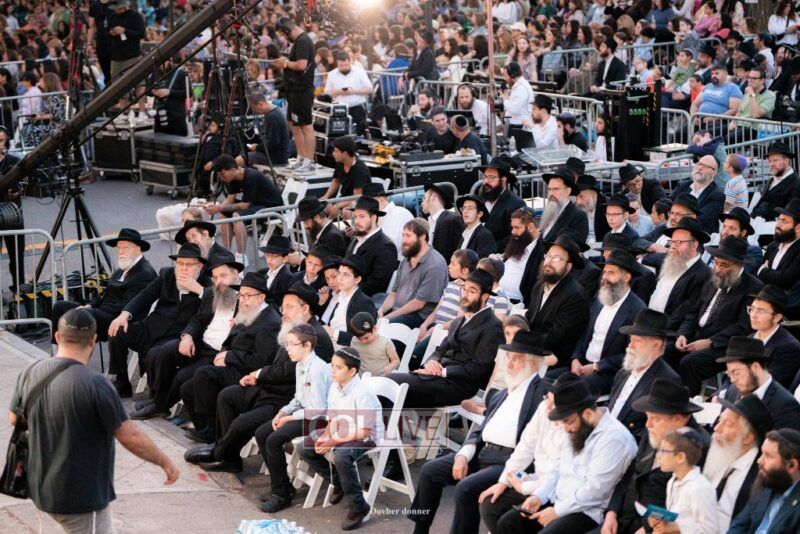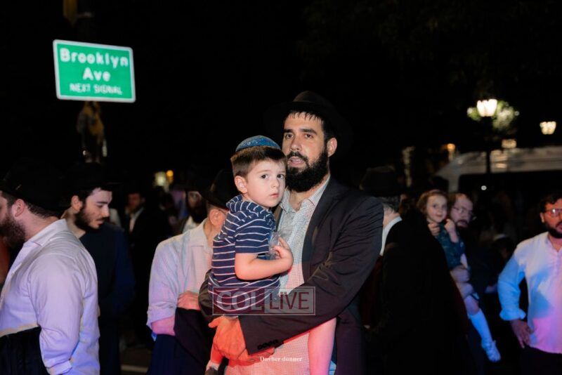 The central gathering took place outside 770, Lubavitch World Headquarters in Crown Heights.