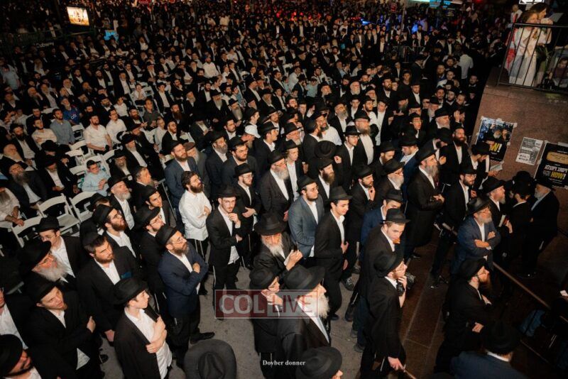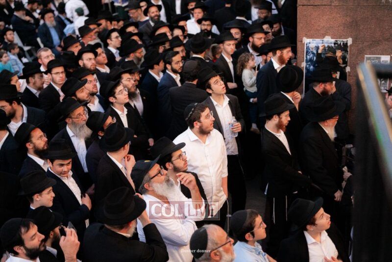 Over 7,500 men, women and children gathered outside 770 Eastern Parkway on Monday night, eve of Gimmel Tammuz, for an hour with the Rebbe and a beautiful sign of achdus and hiskashrus.