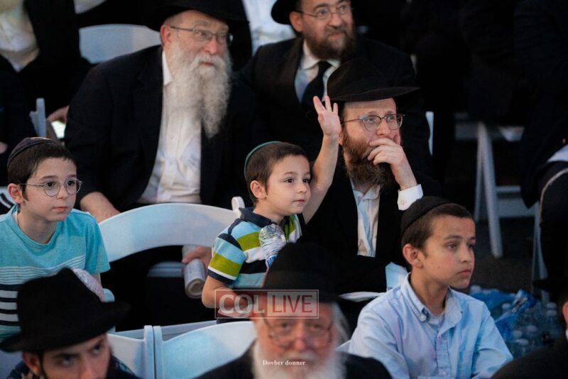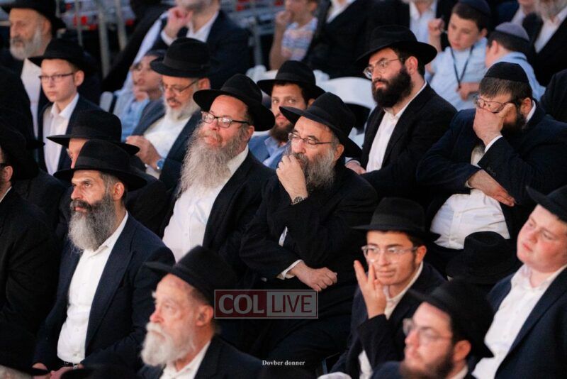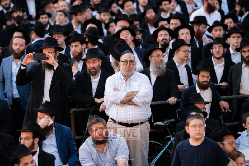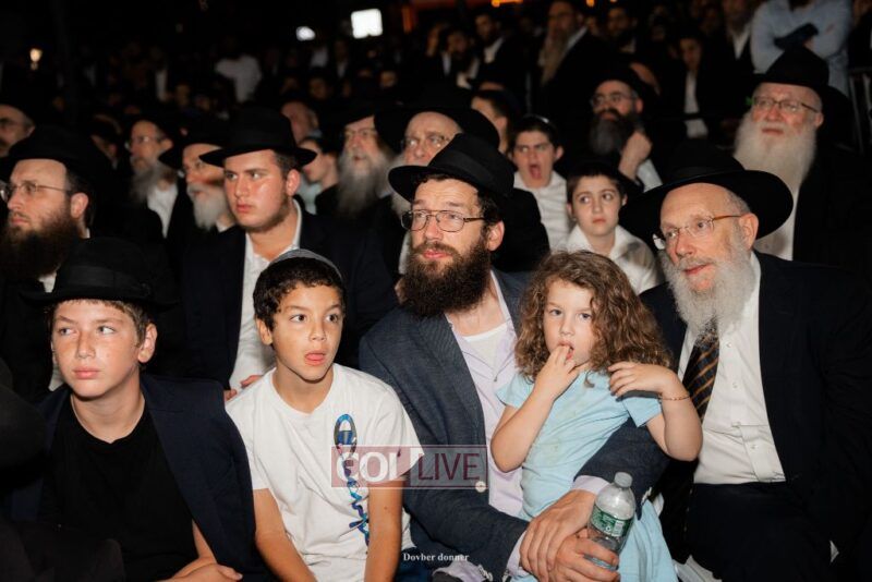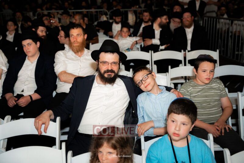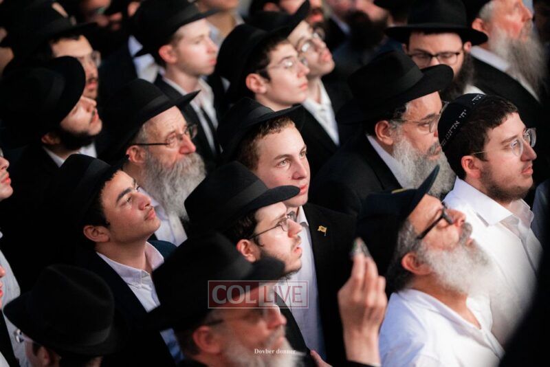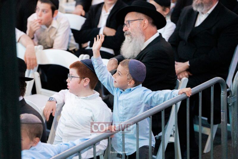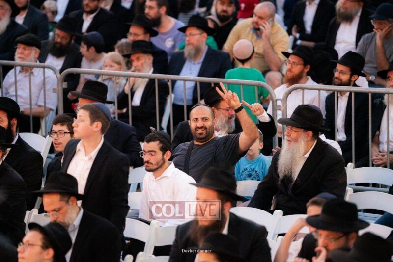 Thousands of Chassidim united in person and online via live stream, singing the Rebbe’s Niggunim and watching video presentations of the Rebbe.