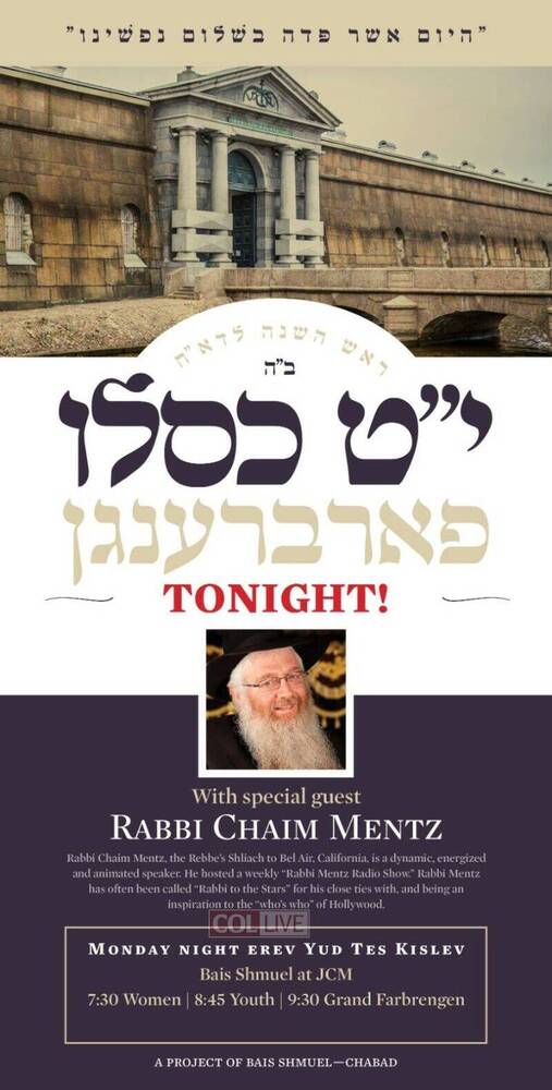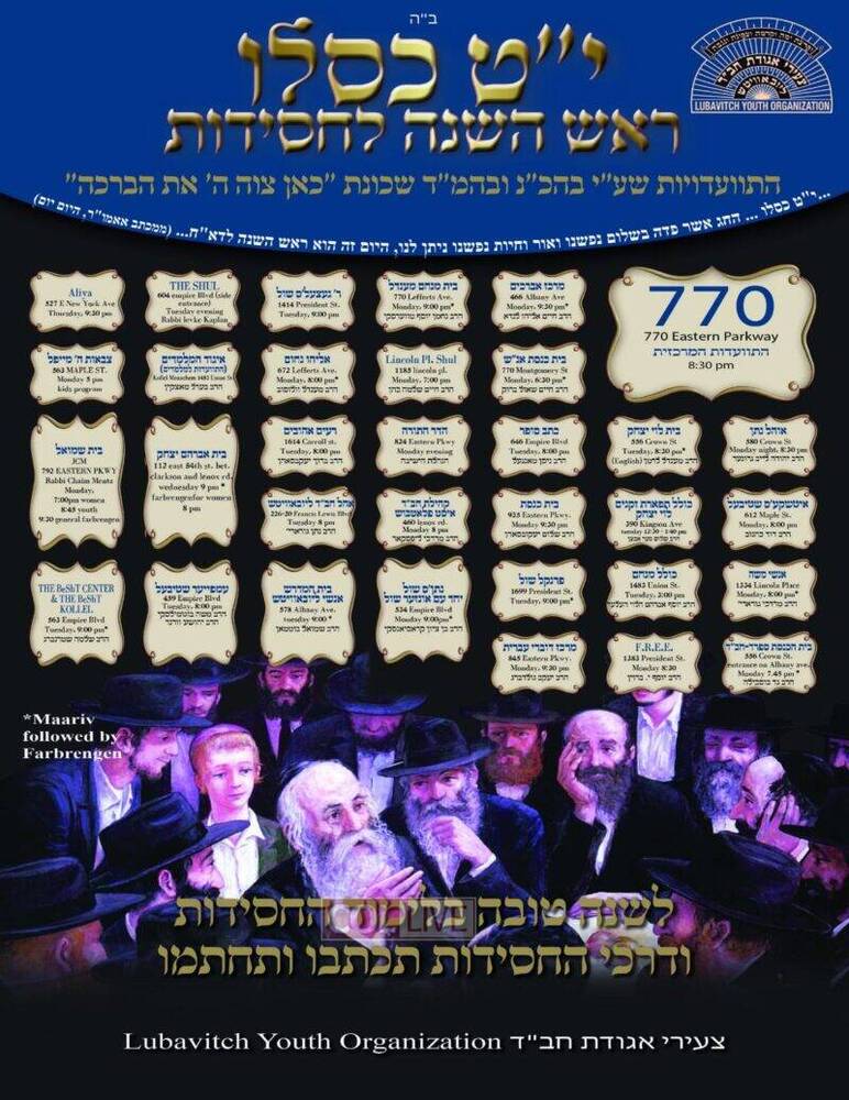 In the Crown Heights area, some 31 farbrengens will be held for men, each will have refreshments and a guest speaker. An additional farbrengen will be held at the Ohel, along with hundreds of others in the New York area, across the United States and the world.