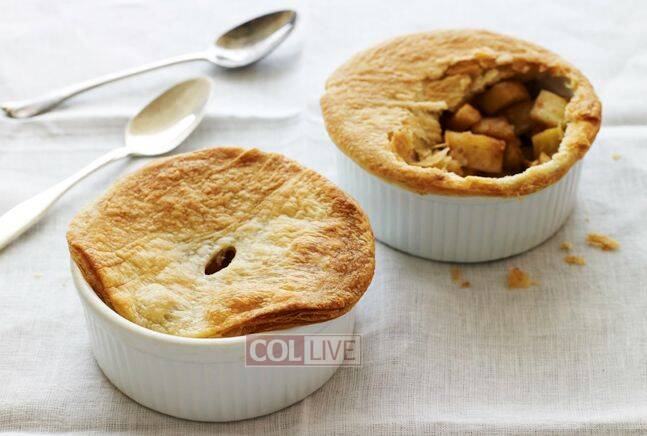 3. Stir in lemon juice, sugar, cinnamon, nutmeg, and ginger and cook 1 minute more. Evenly distribute filling between 4 (1-cup capacity) ramekins.