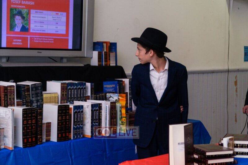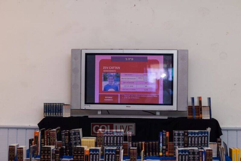 Each camper was then called up to receive their sefer or seforim accompanied by a multimedia presentation, displaying their picture, points, major learning achievements and seforim by the campers themselves from camp’s catalog of over 250 seforim.