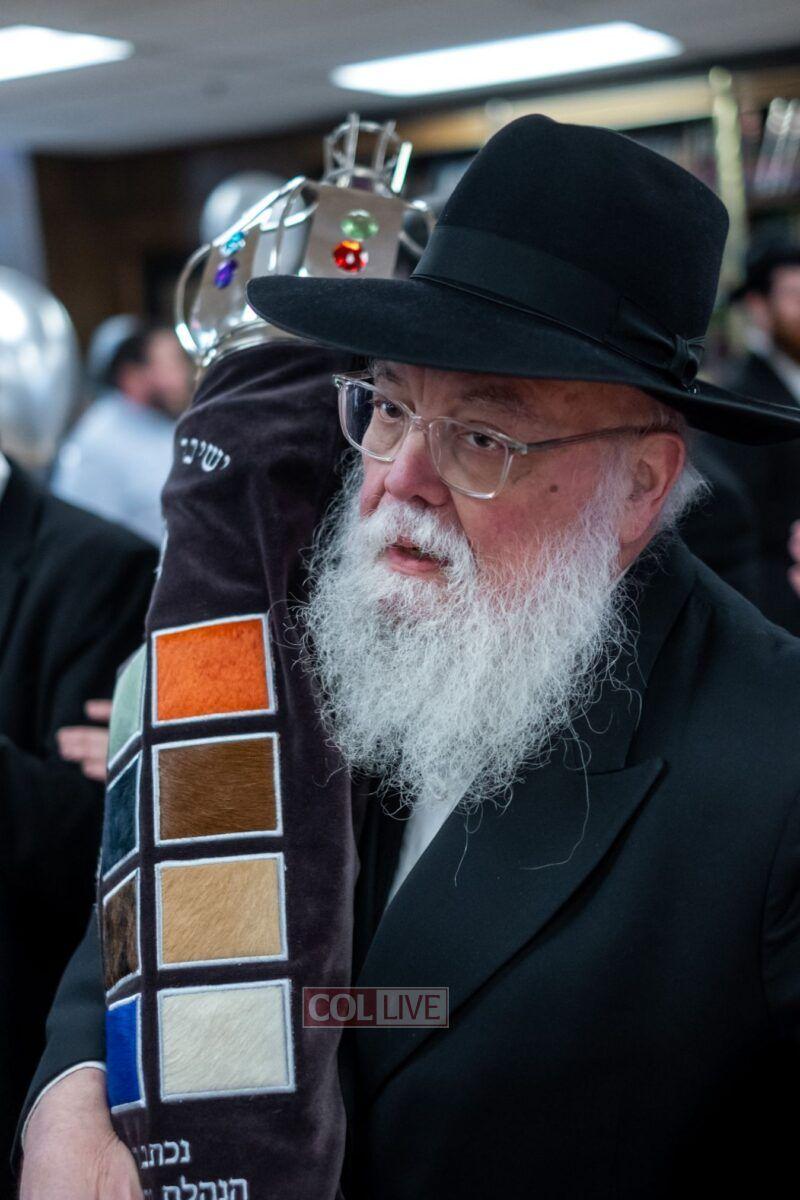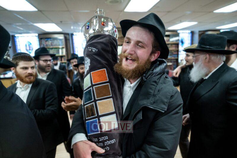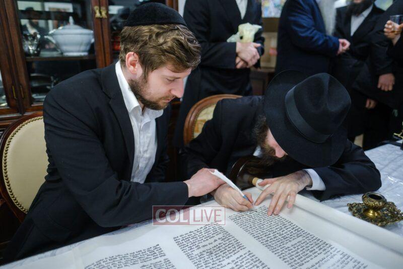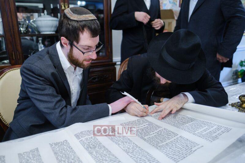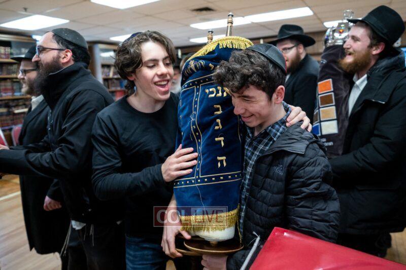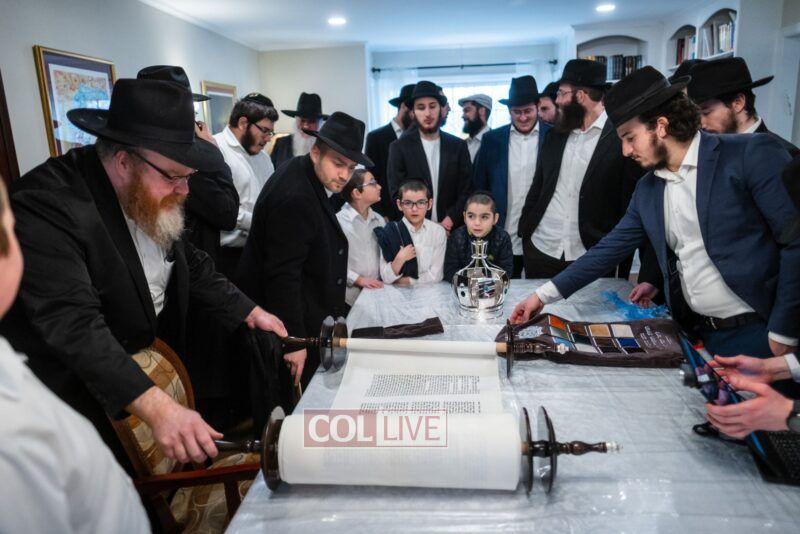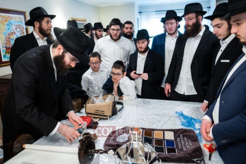 On Sunday morning Rabbi Chaim Brafman began the day by teaching the famous mamar l’hovin inyan kesivas sefer Torah. This was followed after davening by a siyum of the sefer Torah commissioned to be written for the 50th anniversary of Tiferes Bachurim.