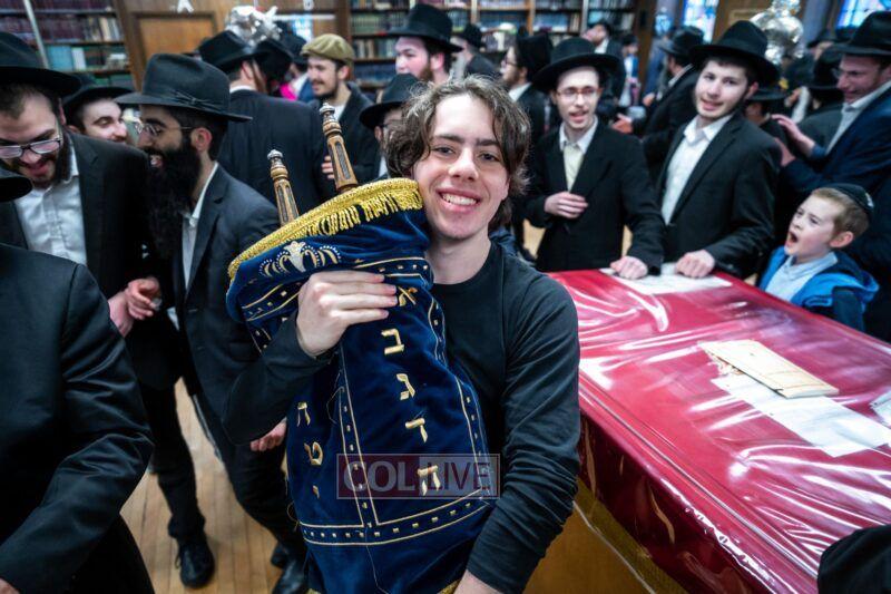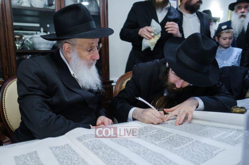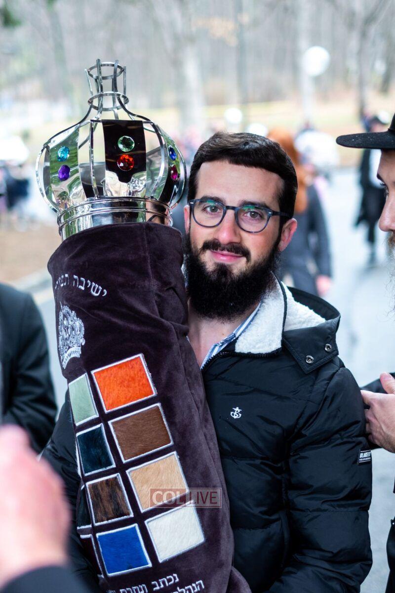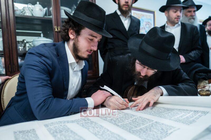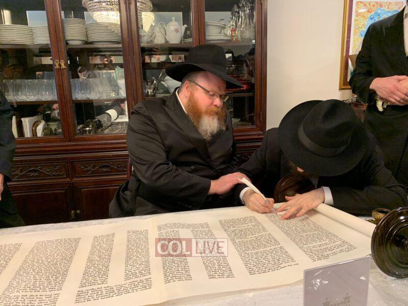 On Sunday morning Rabbi Chaim Brafman began the day by teaching the famous mamar l’hovin inyan kesivas sefer Torah. This was followed after davening by a siyum of the sefer Torah commissioned to be written for the 50th anniversary of Tiferes Bachurim.