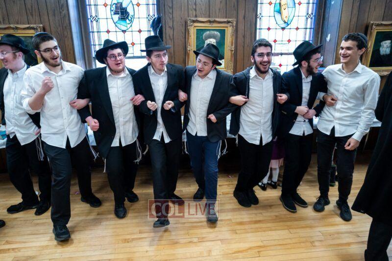 The seudah was “topped off” by a Sheva Berachos for Moshe and Shira Colin, and immediately followed by a l’chayim for Yeshiva alum Yehoshua Louis of Los Angeles to Tehilla White of Guelph, Ontario.
