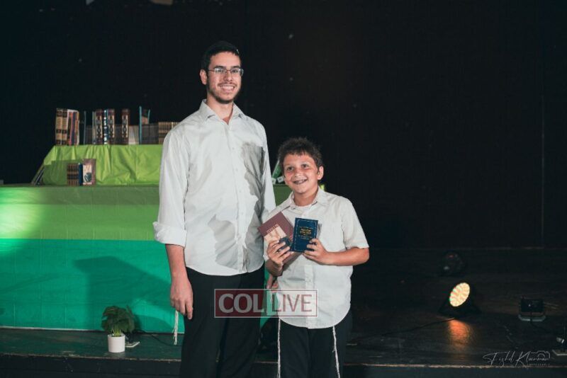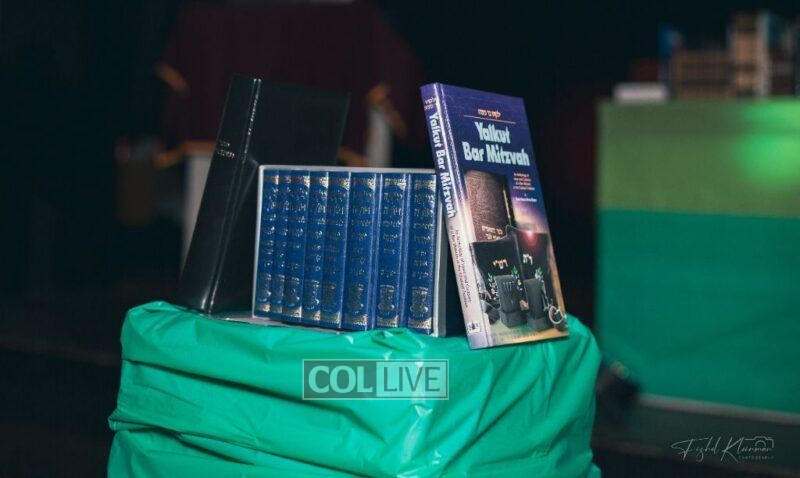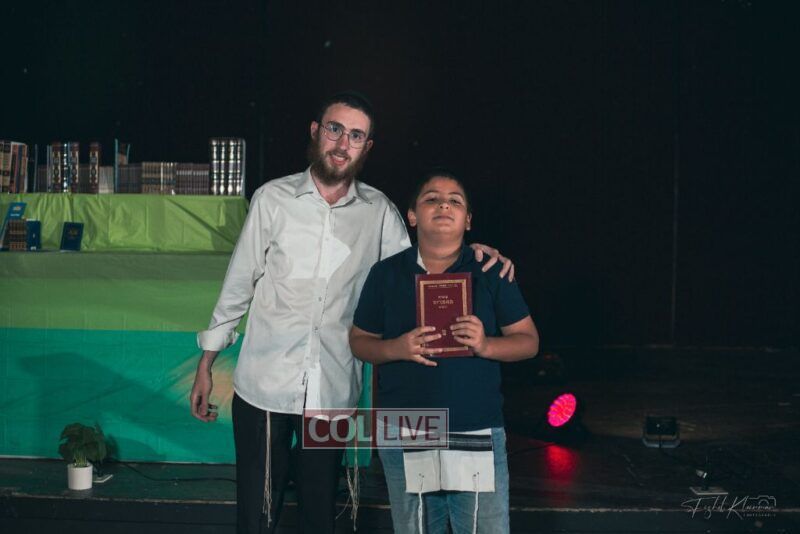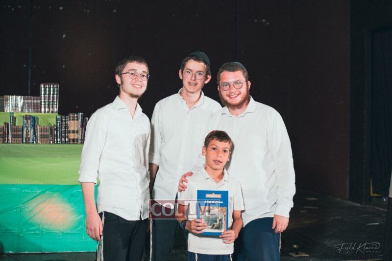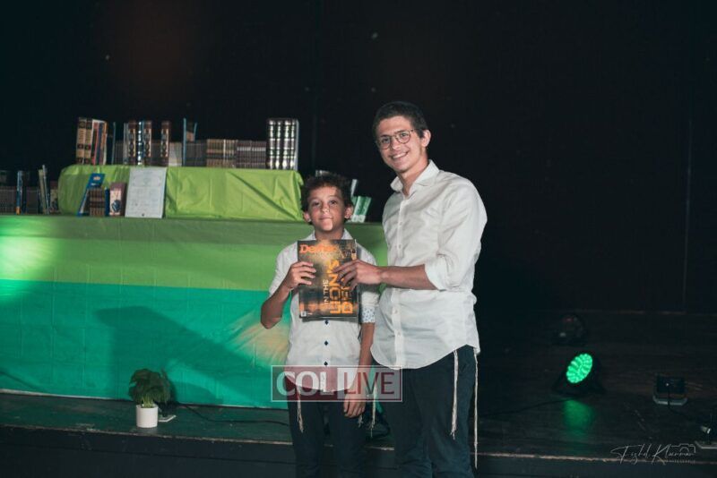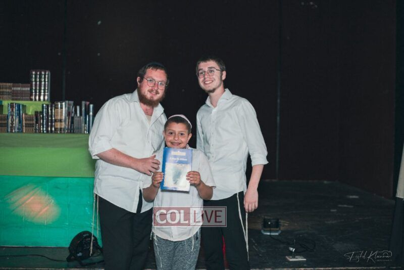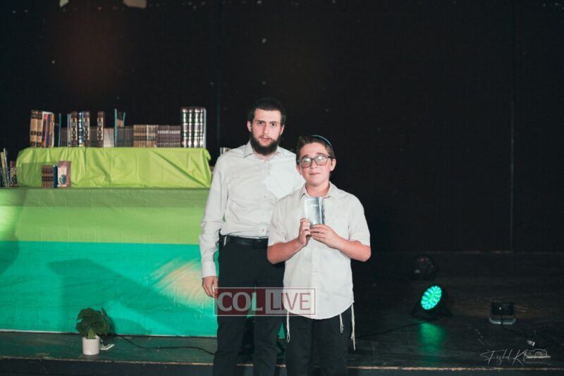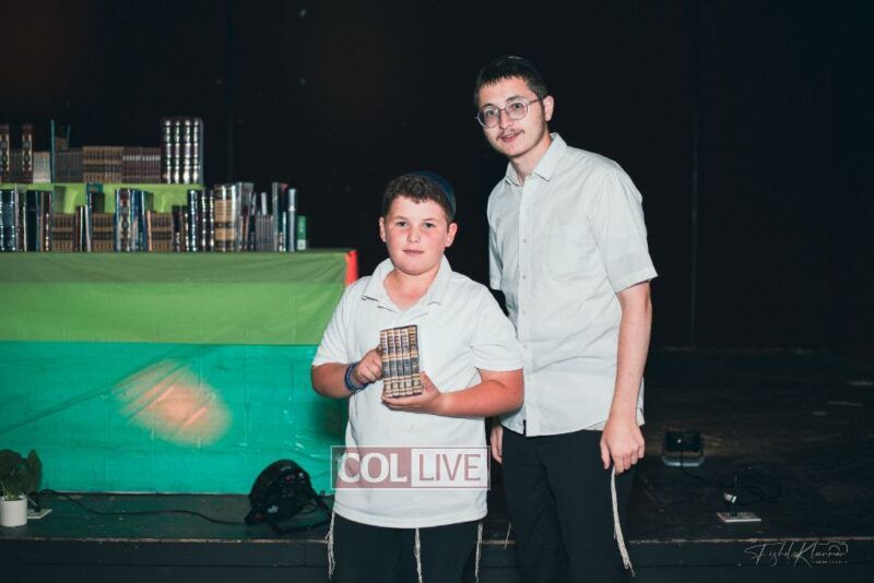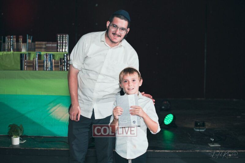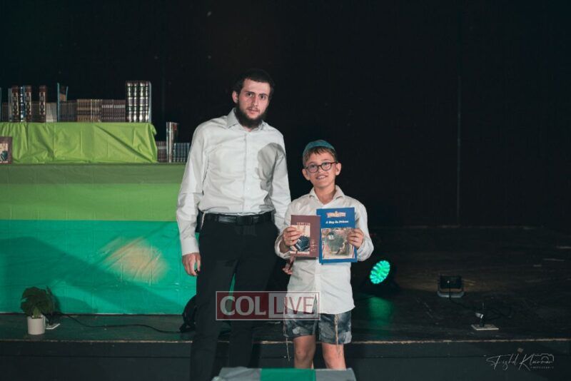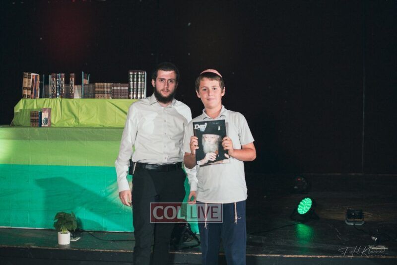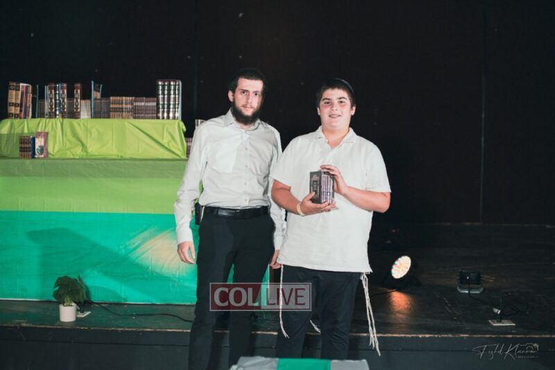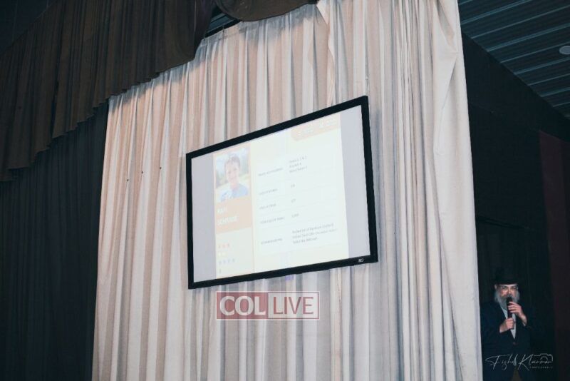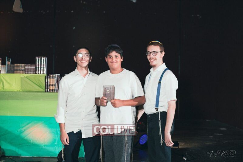 Each camper, accompanied by a multimedia presentation that included their picture and stats, was then called to the stage to receive the seforim they ordered from the camp’s seforim catalog, based on their point total.