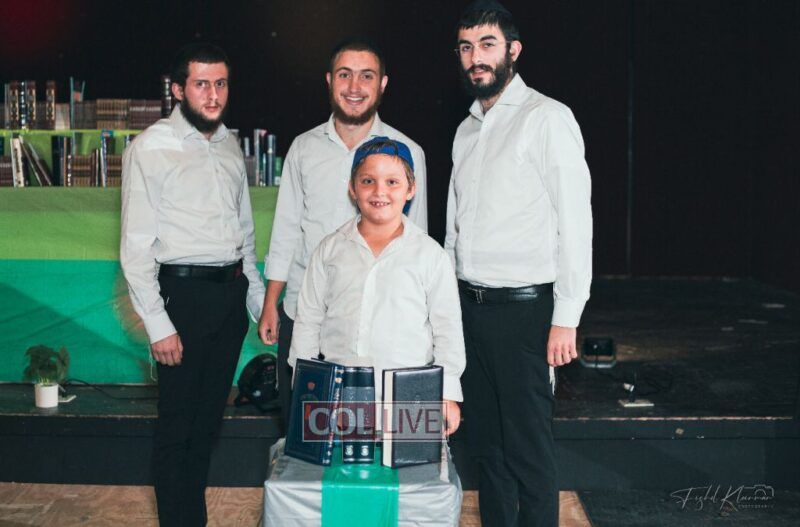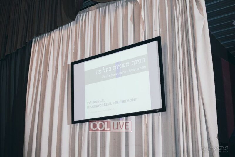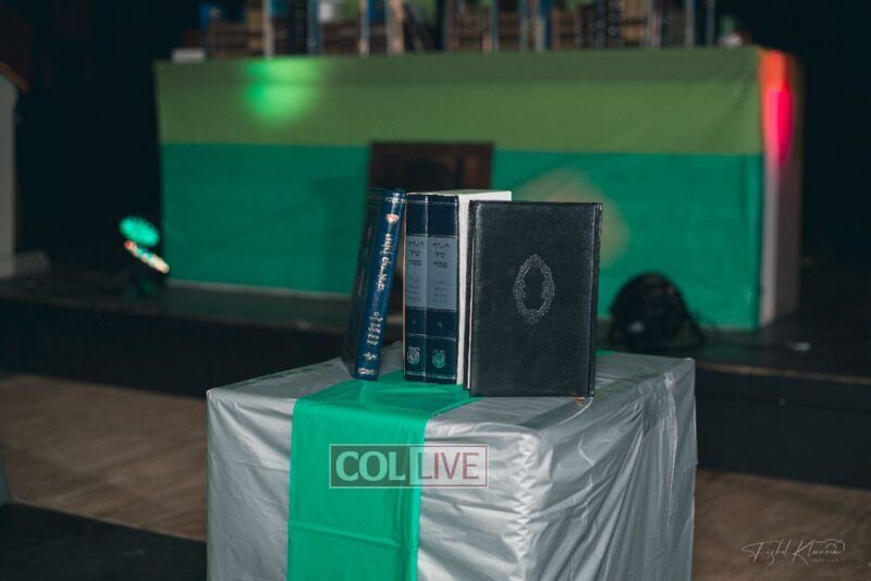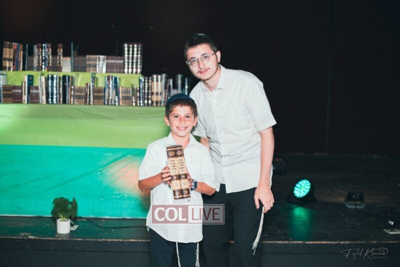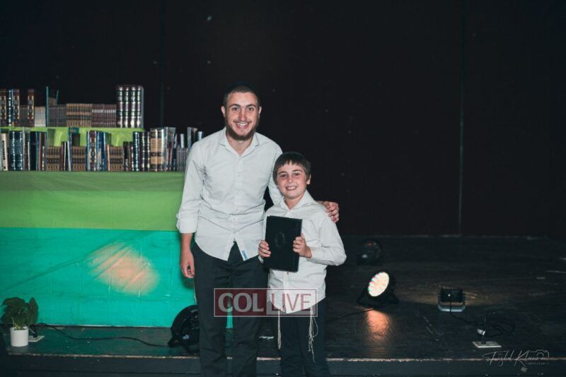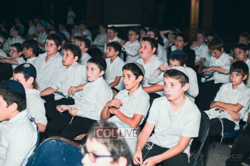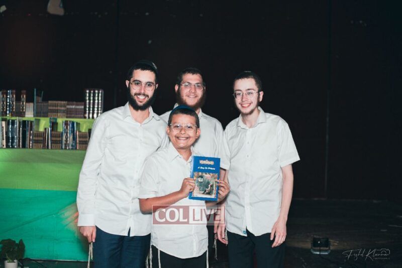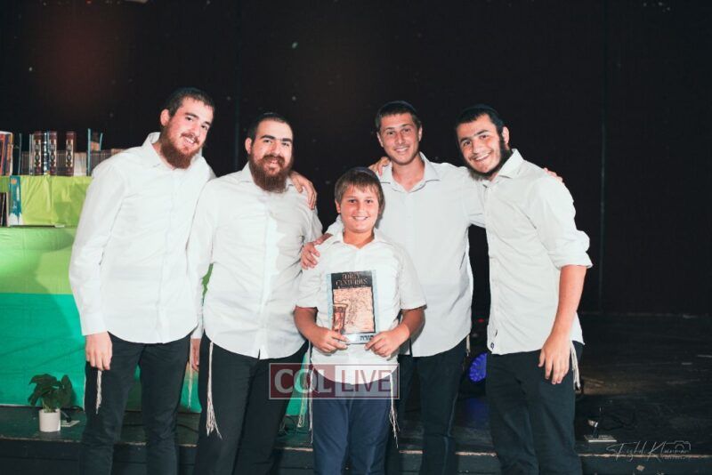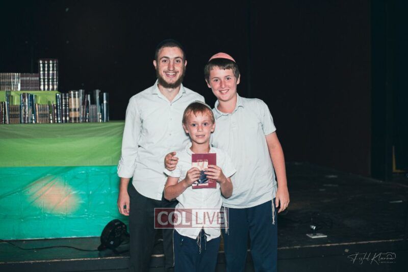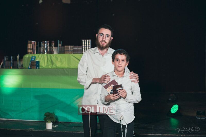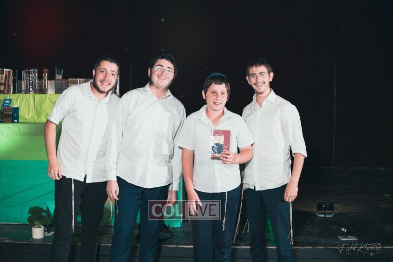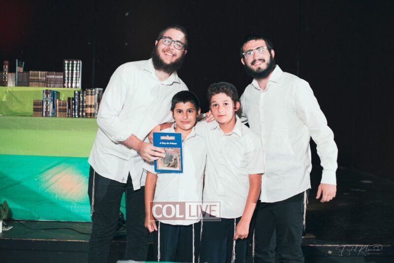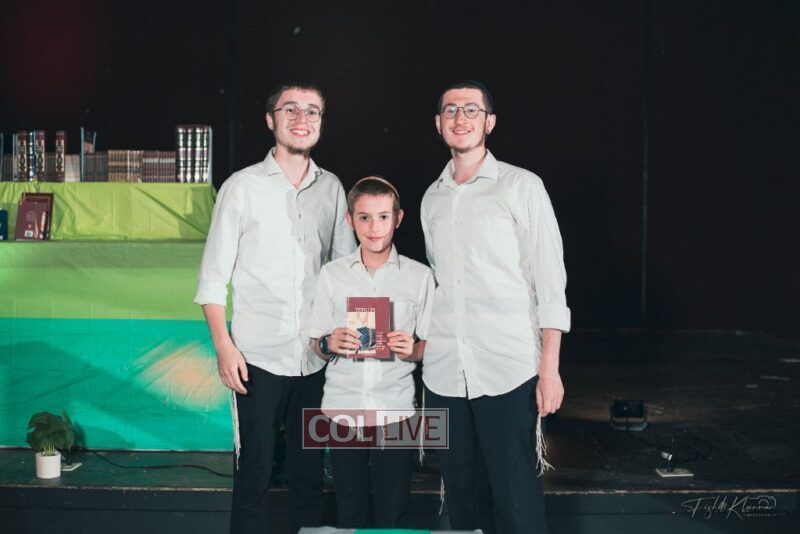 Each camper, accompanied by a multimedia presentation that included their picture and stats, was then called to the stage to receive the seforim they ordered from the camp’s seforim catalog, based on their point total.