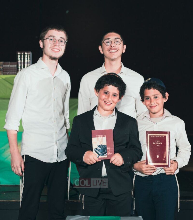 A video showing the Rebbe’s appreciation for such gifts was shown, followed by honoring the campers present in camp with the most points: 1st Place – Rafi Schrage, 2nd Place – Ari Katan, and 3rd Place – Eli Cattan.