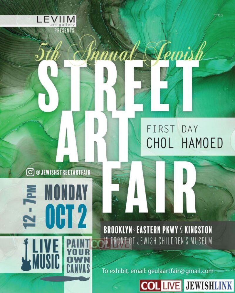 On Monday, October 2nd, first day Chol Hamoed Sukkos, Leviim Jewish Art Gallery is excited to announce they will be hosting the fifth iteration of the Geulah Jewish Art Fair.