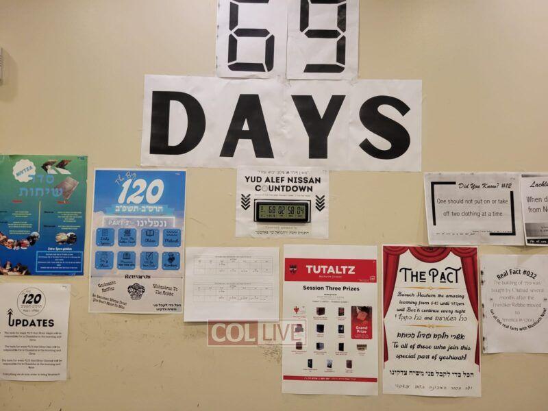 A large countdown clock on the wall of the Yeshiva has been counting down to the auspicious day, with the preparations beginning four months ago, on 11 Cheshvan, when the bochurim Shluchim announced a Mivtza which includes keeping sedorim and extra learning of the Rebbe’s Torah.
