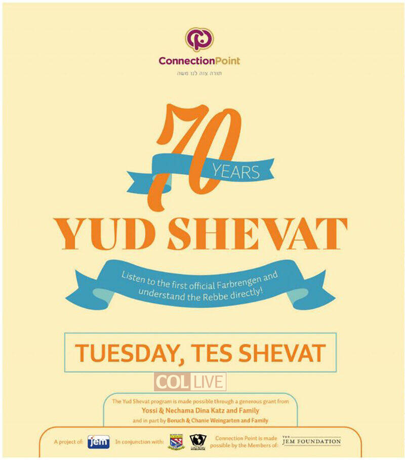 The Yud Shevat program is made possible through a generous grant from Yossi & Nechama Dina Katz and Family and in part by Boruch & Chanie Weingarten and Family.