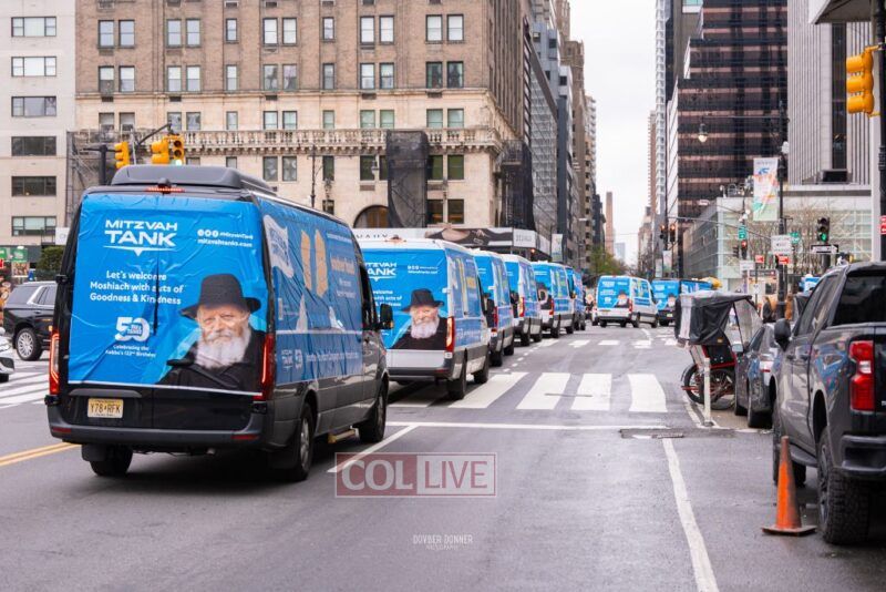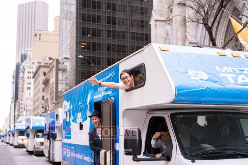 The 50th Mitzvah Tank parade headed out to the streets of New York City on Thursday in honor of the Rebbe’s birthday on Yud Alef Nissan.