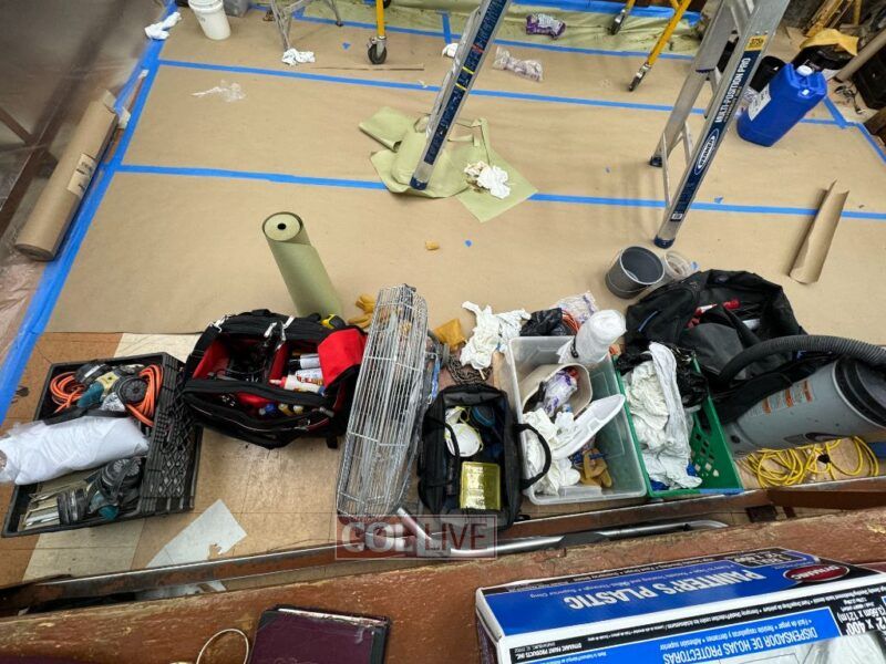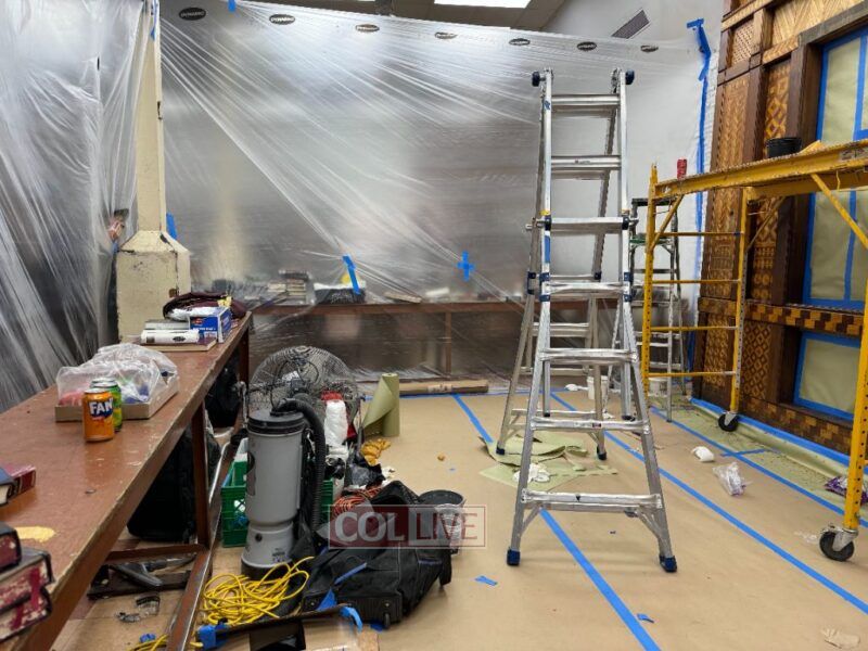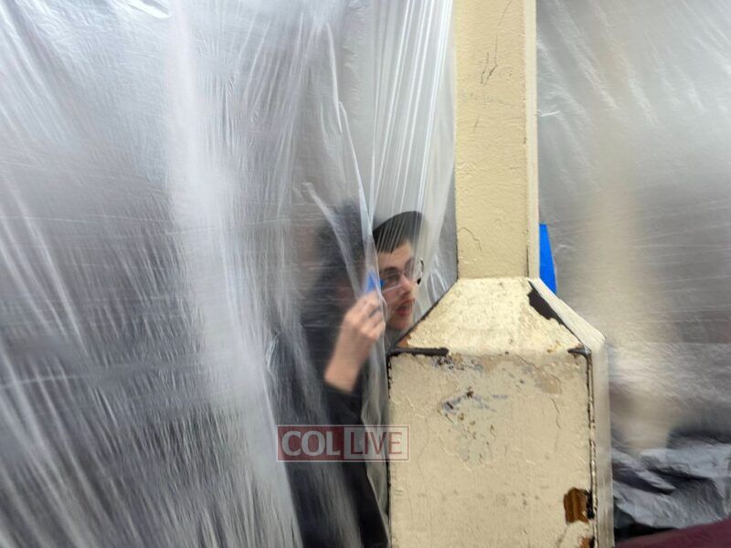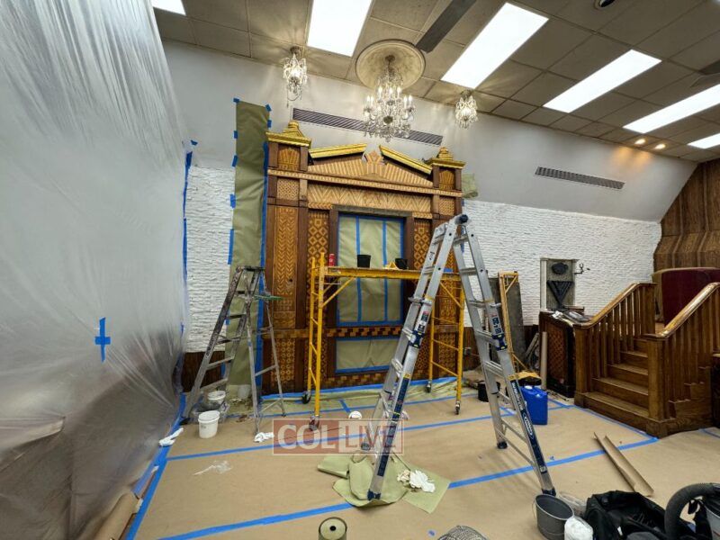 Holy paint job: The wooden Aron Kodesh of the main shul at 770 Eastern Parkway in Crown Heights was blocked off on Monday for renovation. Photos