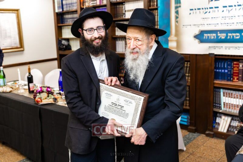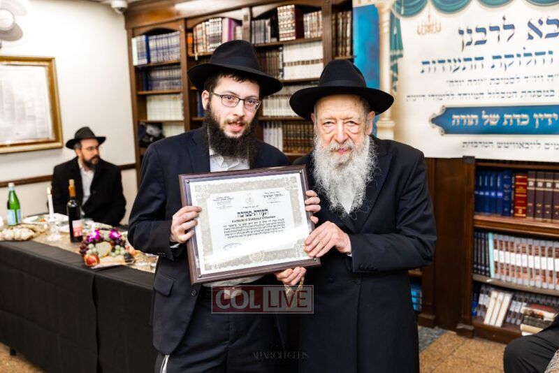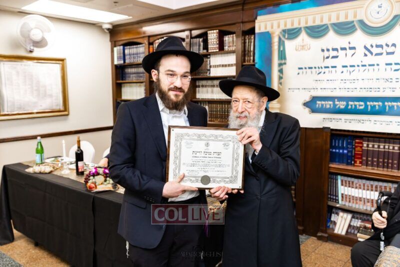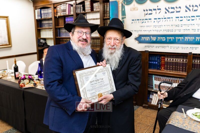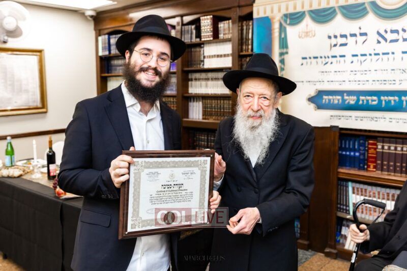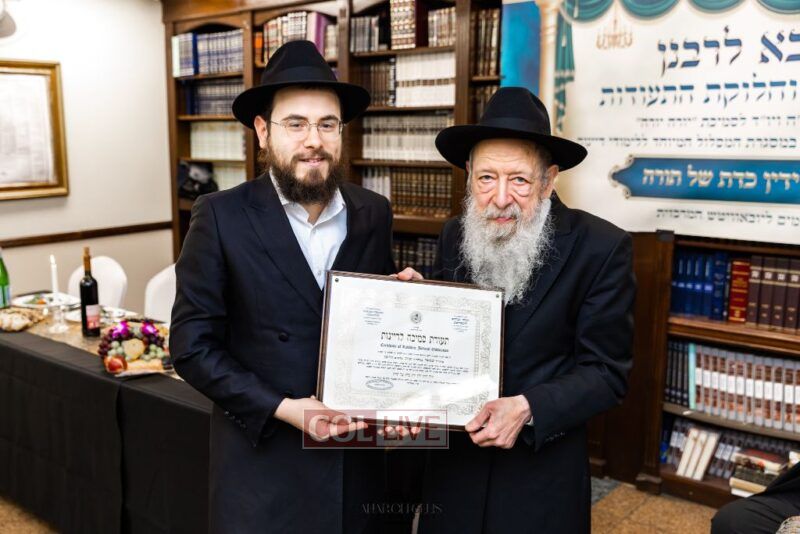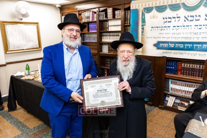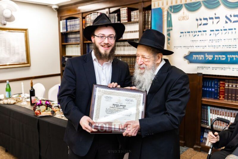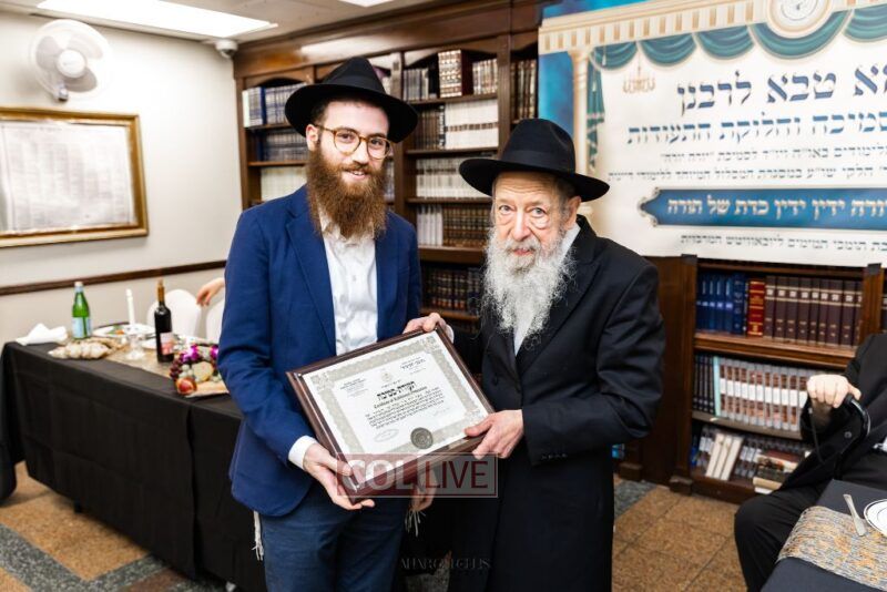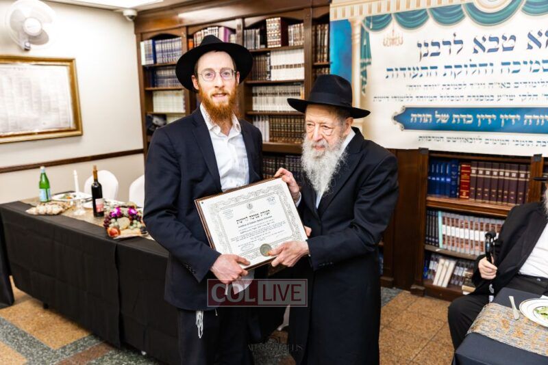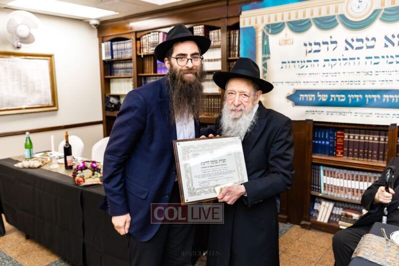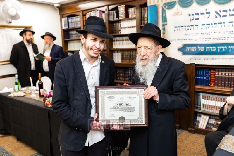 Before the certificates were distributed, Rabbi Avi Eskinazi, on behalf of the mesaimim of the Dayanus program, presented Rabbi Labkowski and Rabbi Liberow with a set of seforim with the names of those who chipped in for it as a token of appreciation for their dedication to the success and growth of all the talmidim. Rabbi Labkowski was also presented with an acrylic photo of him beside the Rebbe at “mayim shelanu”.
