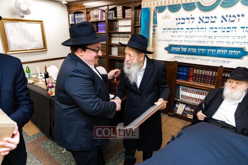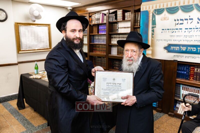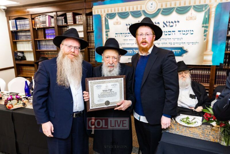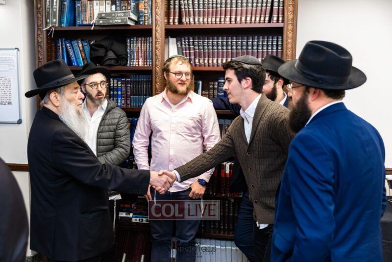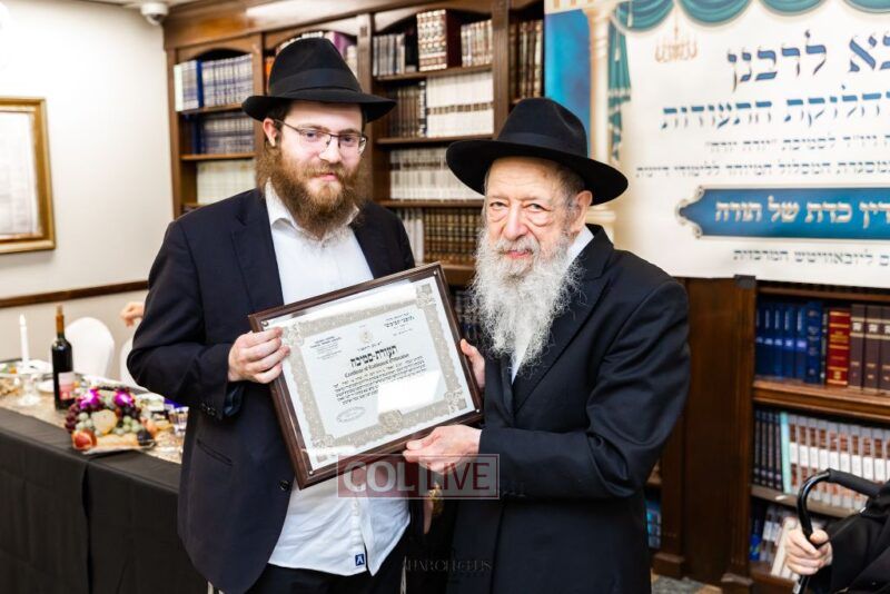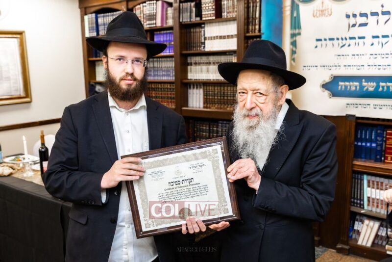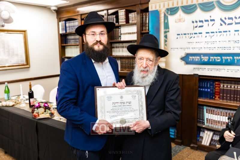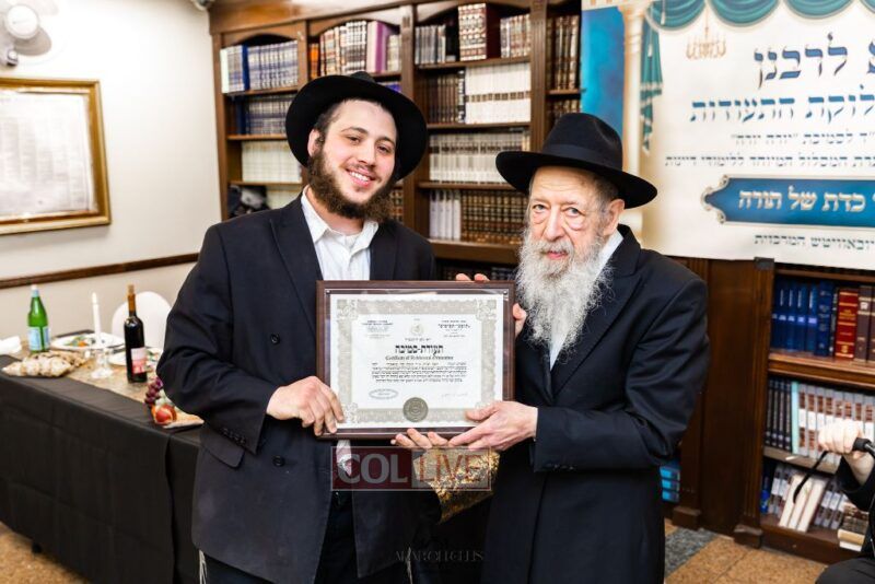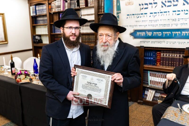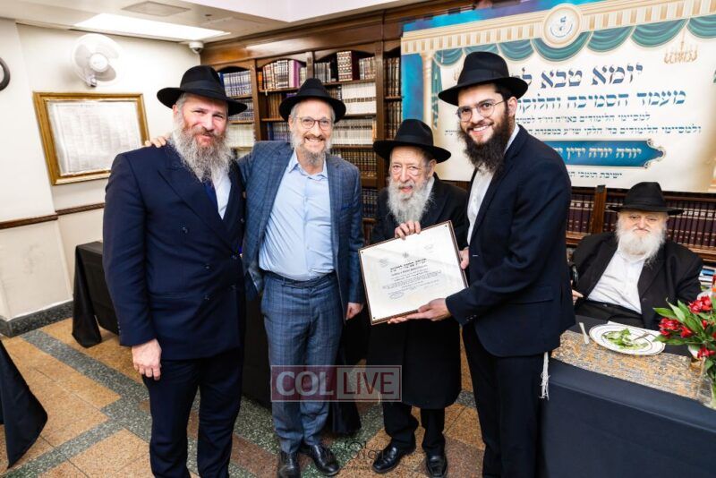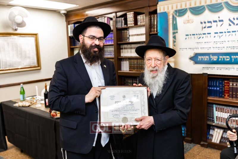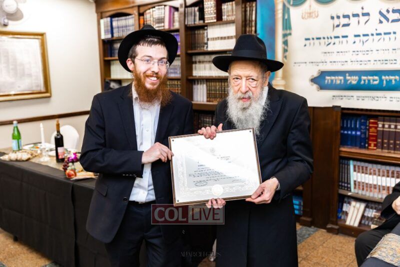 Before the certificates were distributed, Rabbi Avi Eskinazi, on behalf of the mesaimim of the Dayanus program, presented Rabbi Labkowski and Rabbi Liberow with a set of seforim with the names of those who chipped in for it as a token of appreciation for their dedication to the success and growth of all the talmidim. Rabbi Labkowski was also presented with an acrylic photo of him beside the Rebbe at “mayim shelanu”.