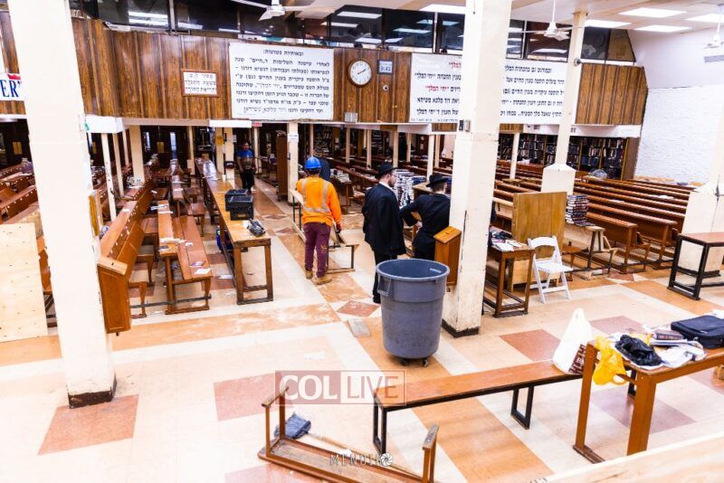 The Main Shul of 770 Eastern Parkway was cleared out on Friday morning, as crews prepare for the thousands who will Daven there on Rosh Hashana. Photos