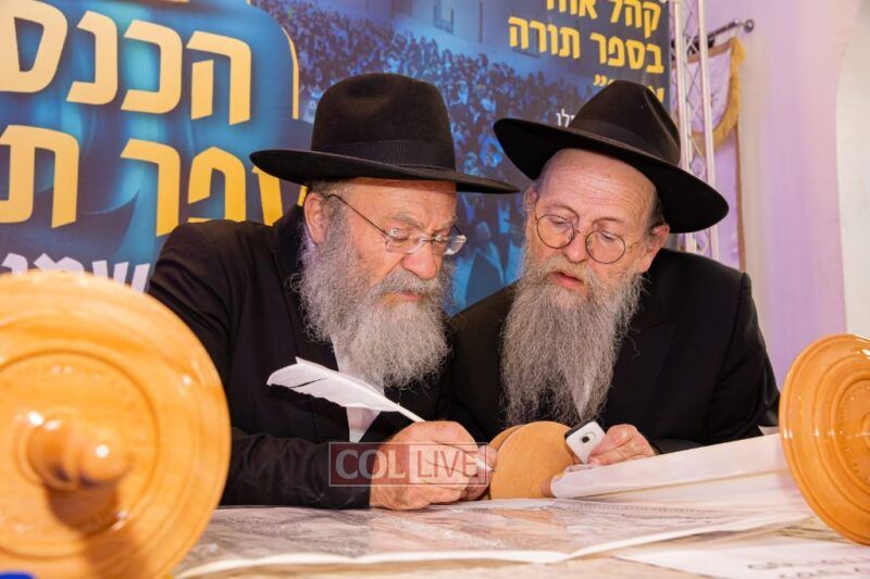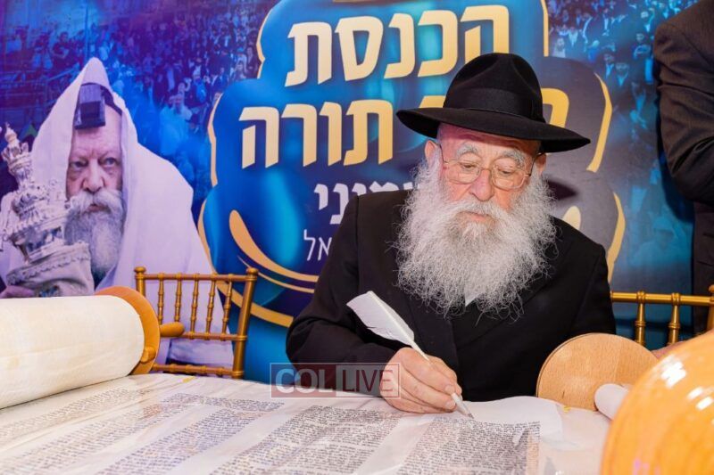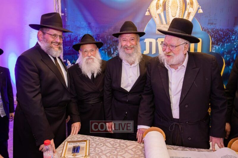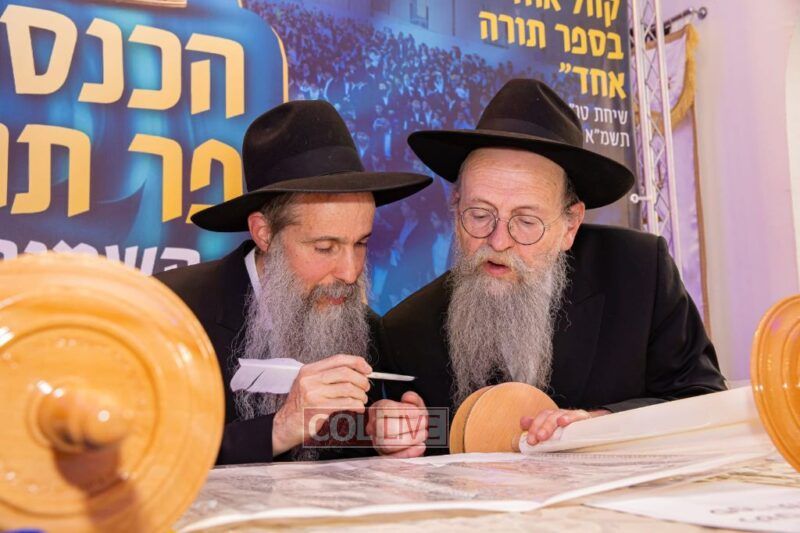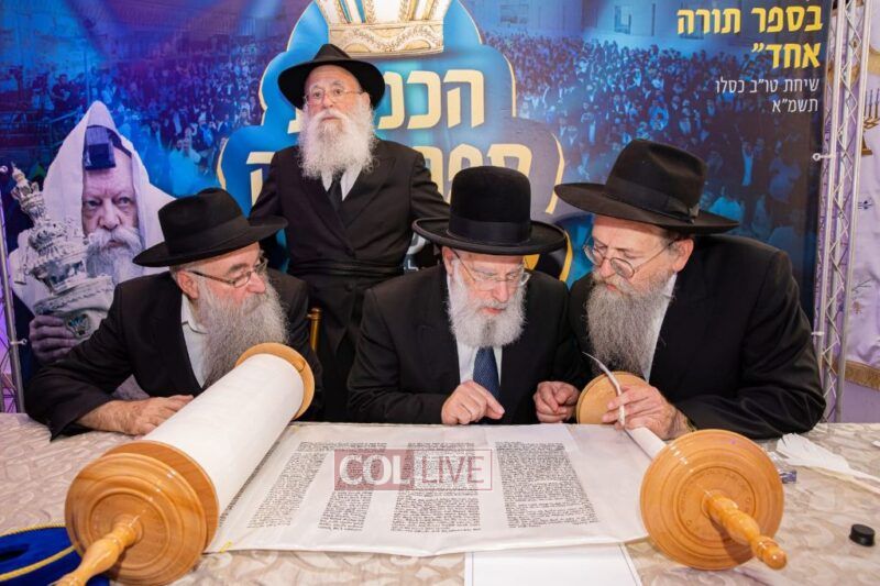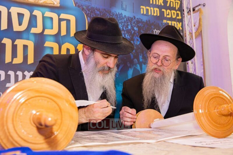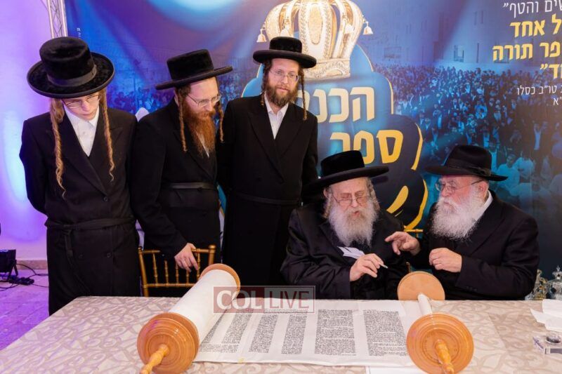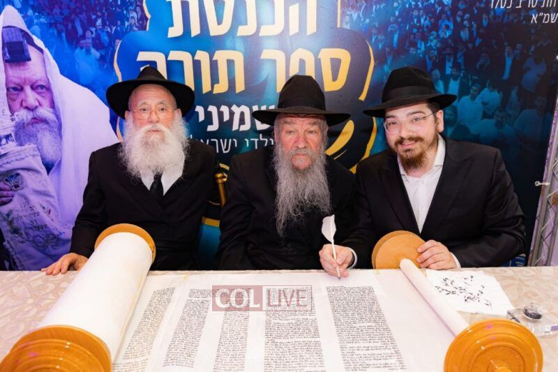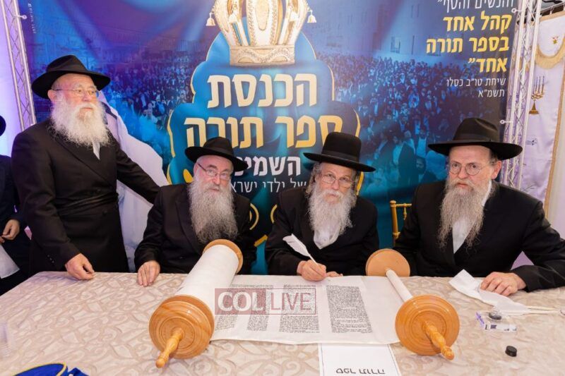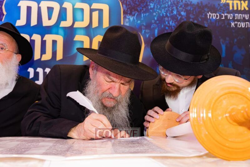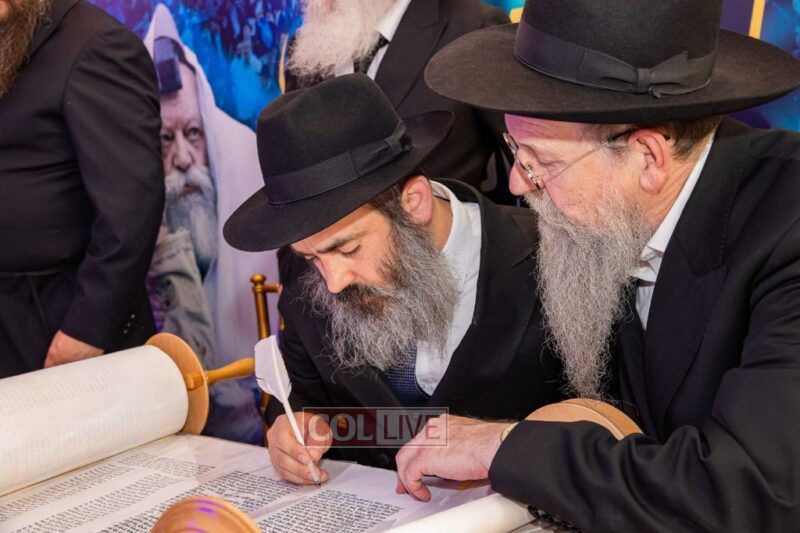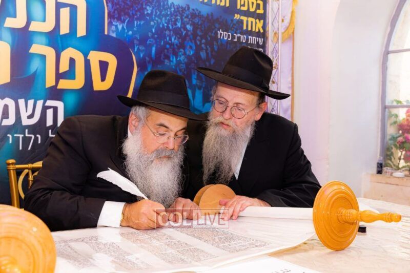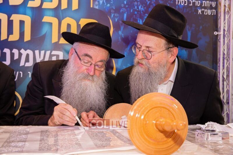 Today, the eighth Torah scroll was completed in the same place, during this Hakhel year. Thousands gathered at the Western Wall in Jerusalem to celebrate its completion, with the participation of prominent Rabbis and Shluchim.