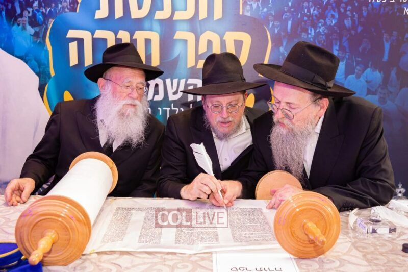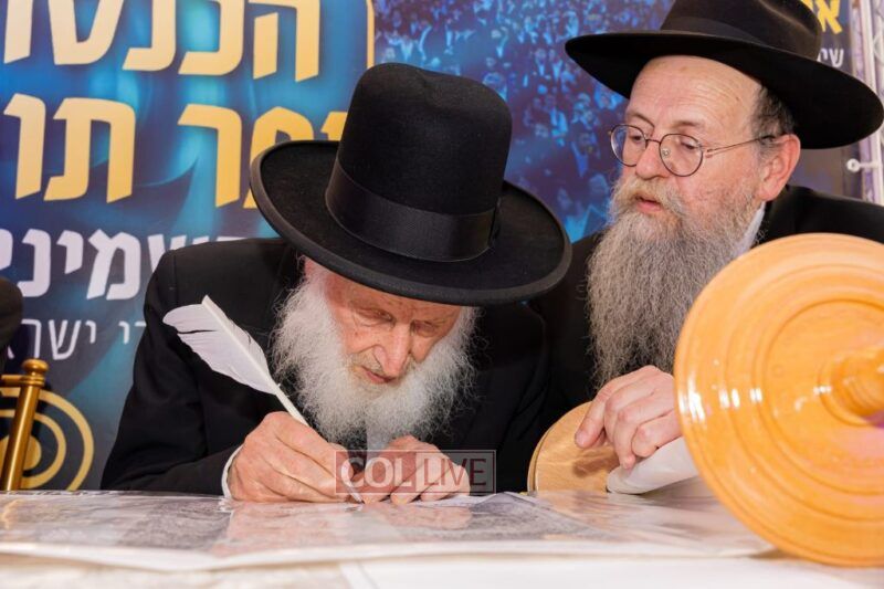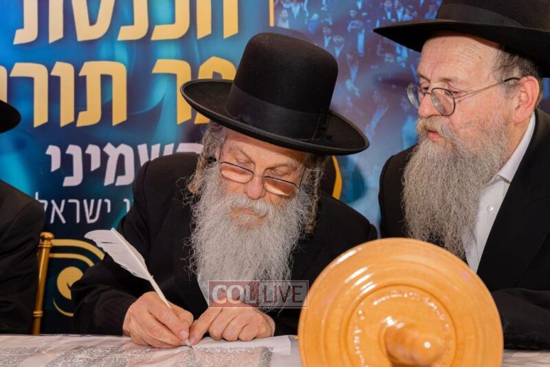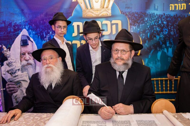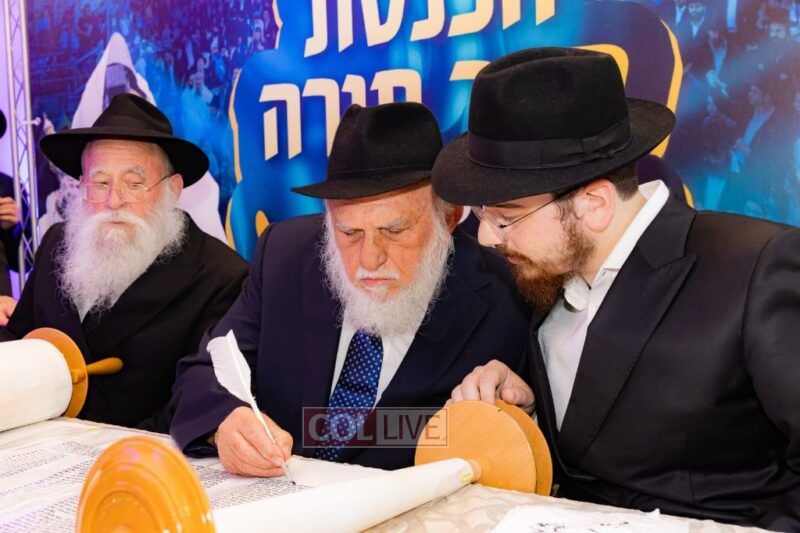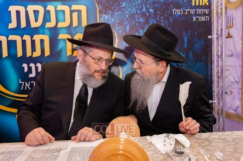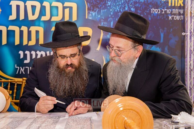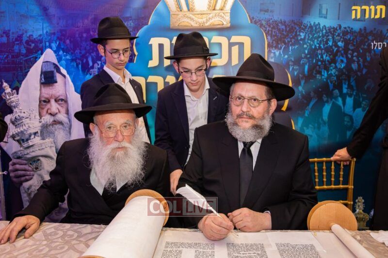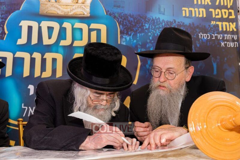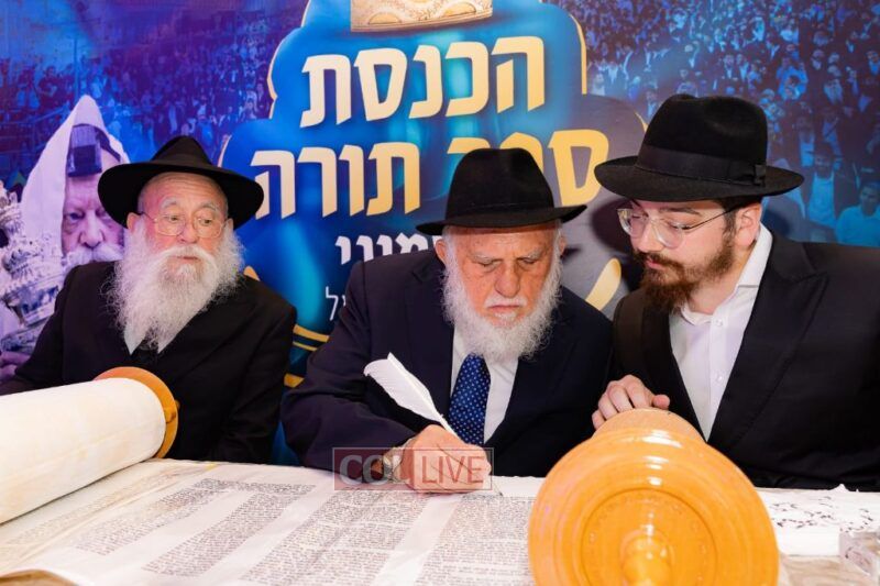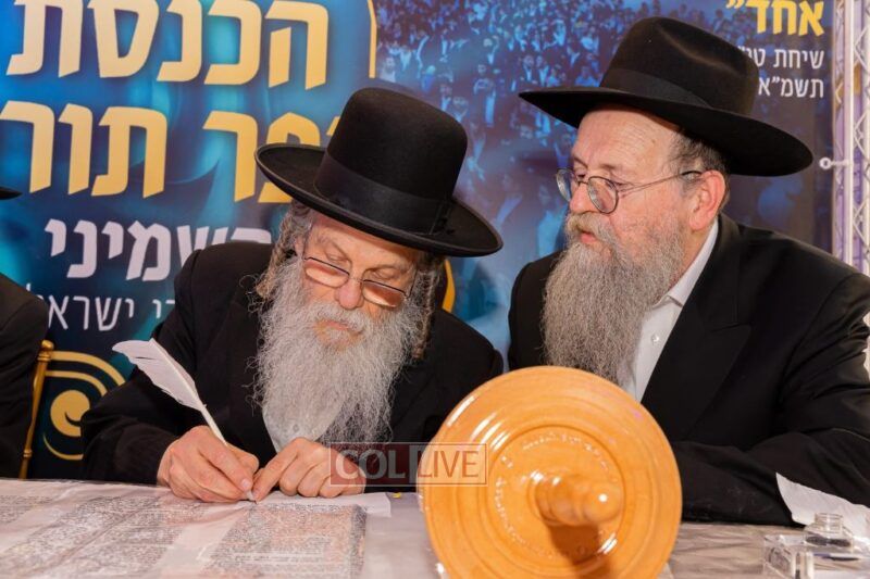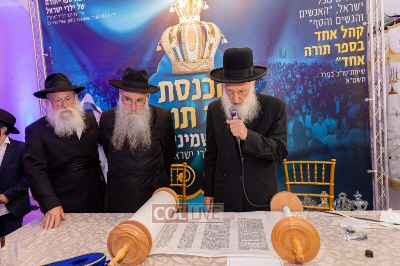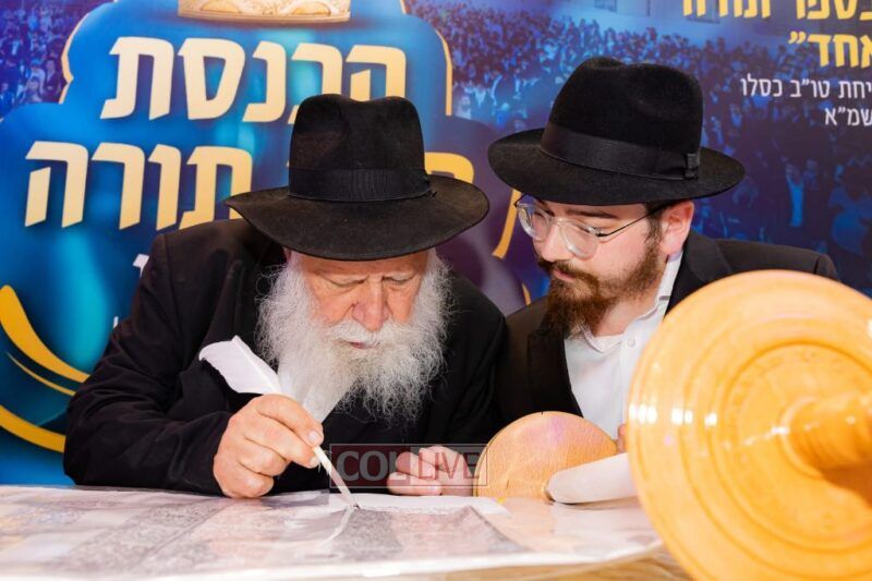 Today, the eighth Torah scroll was completed in the same place, during this Hakhel year. Thousands gathered at the Western Wall in Jerusalem to celebrate its completion, with the participation of prominent Rabbis and Shluchim.