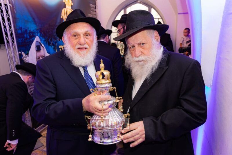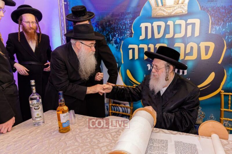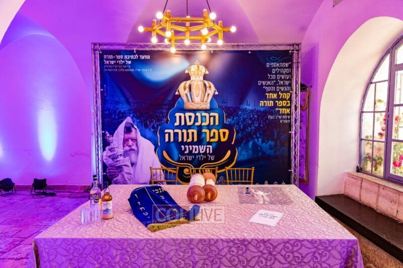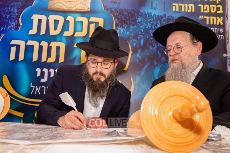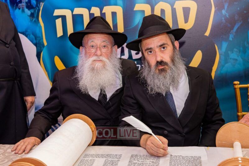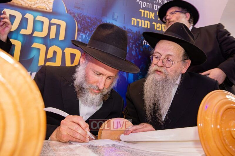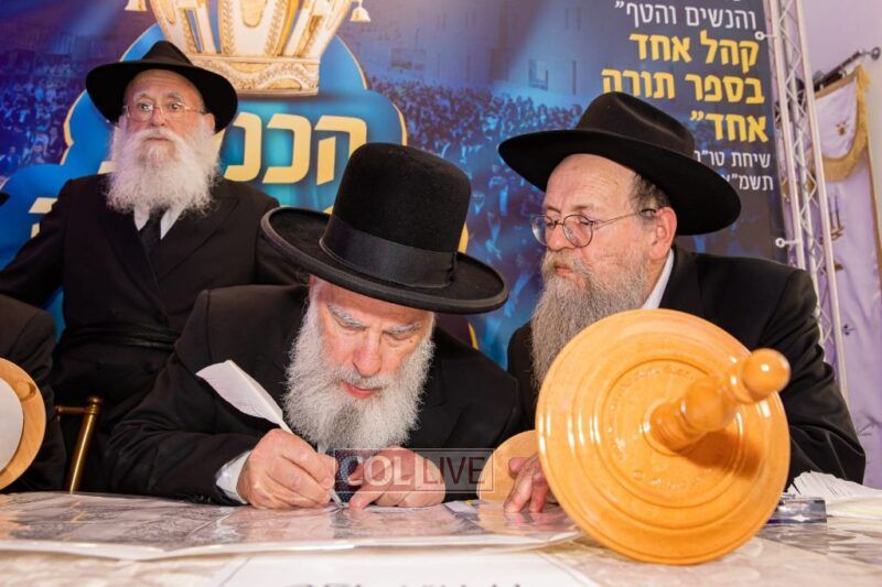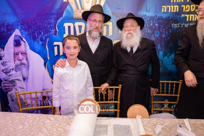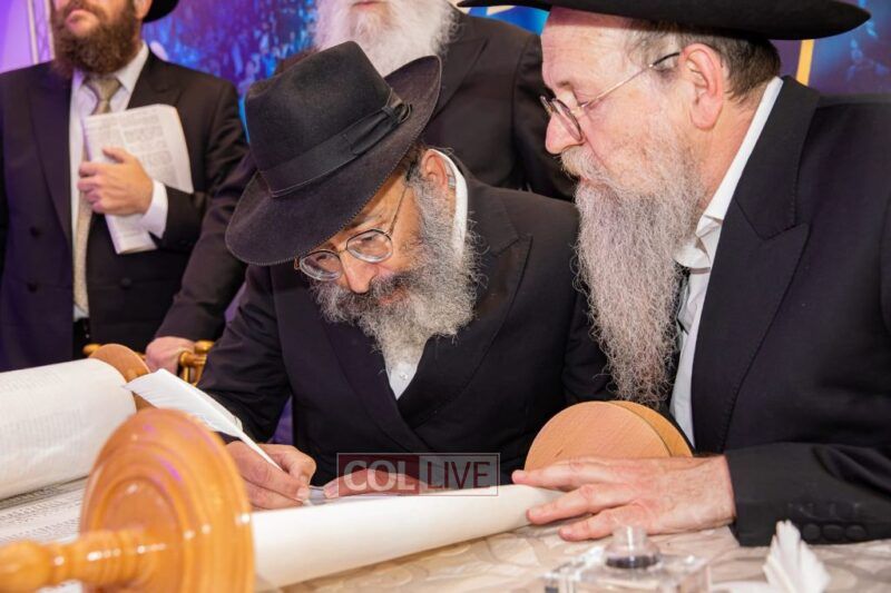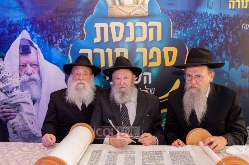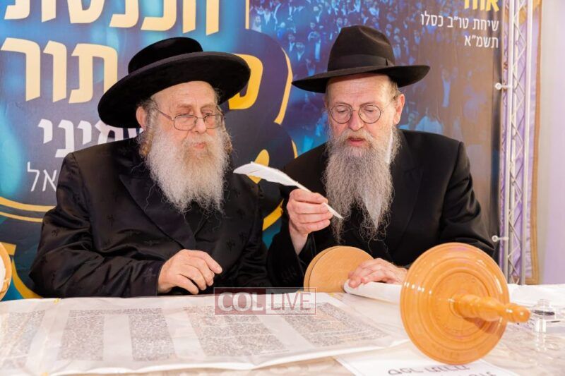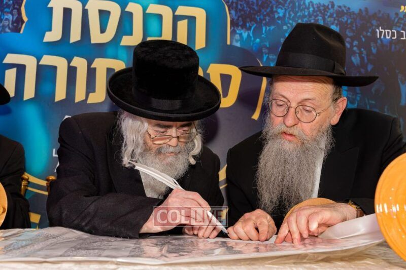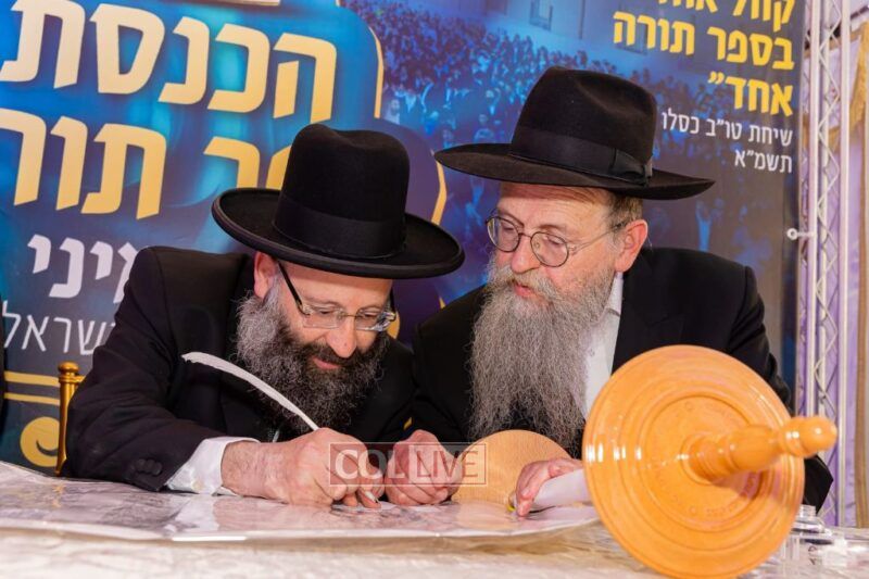 Today, the eighth Torah scroll was completed in the same place, during this Hakhel year. Thousands gathered at the Western Wall in Jerusalem to celebrate its completion, with the participation of prominent Rabbis and Shluchim.