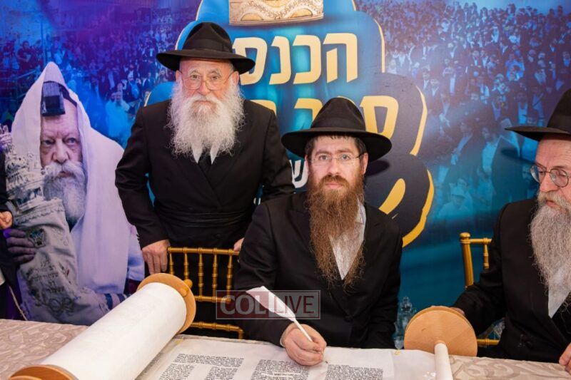 The first Torah initiated by the Rebbe was finalized on Chof Av, 5741 (1981) at the Kotel in Jerusalem.