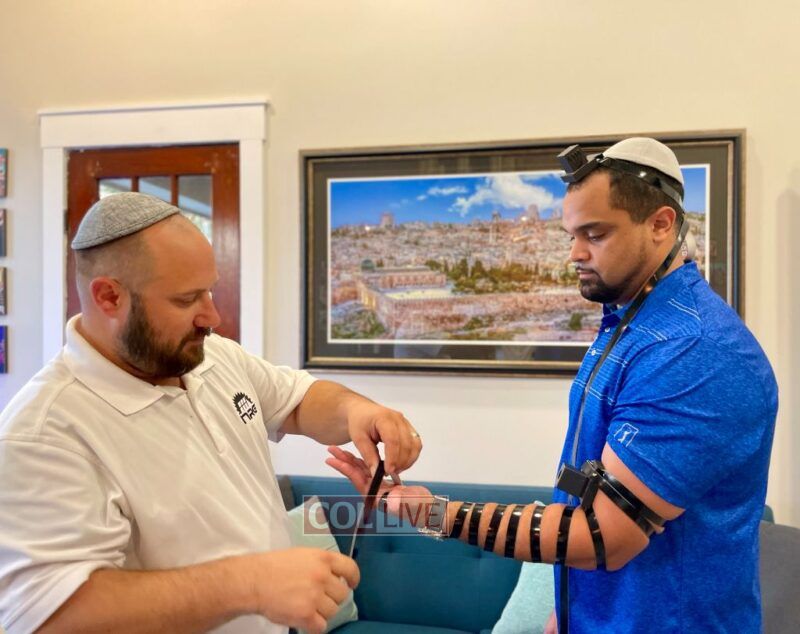 Recently, Rabbi Mendel Danow put Tefillin on a young man named Scott for the first time. Inspired, Scott asked the Rabbi to help him purchase a pair of his own and when they arrived, he excitedly put them on himself. Rabbi Danow then watched Scott turn to his friend Lou saying, “Hey! You’re Jewish too, come make a blessing with my Tefillin.”
