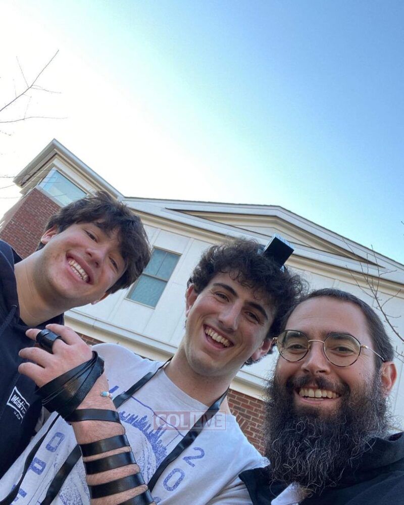 Two students were awaiting their turn with the tefillin straps. “Come with me, guys,” I told them, gesturing for them to follow. I led them to a short wall, directly in front of the protest. We stared the Hamas supporters straight in the face as we wrapped tefillin, proud and unflinching. The students began to sing Shema as loud as they could. Their call was quickly answered by other Jewish students milling around, who joined them on the wall and sang along with them. Other students quickly pressed forward to wrap tefillin, including, to my surprise, Johnny*.