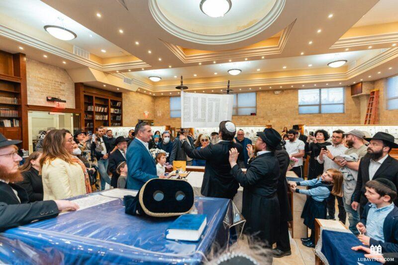 The final letters were inscribed in The New Brighton Jewish Center, where Akiva met Rabbi Faivel Rimler when he first moved to Brighton Beach. “Rabbi Rimler has a special place in my heart, and inscribing the final letters in his synagogue was very meaningful to me.” The Torah was then carried to FREE, where Akiva davens, under the leadership of Rabbi Okonov.