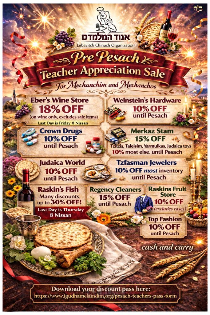 Coordinated by Igud HaMelamdim – Lubavitch Chinuch Organization, a Teacher Appreciation Sale brought together local businesses with a shared purpose: to recognize and honor the mechanchim and mechanchos who devote themselves to the chinuch of our children.