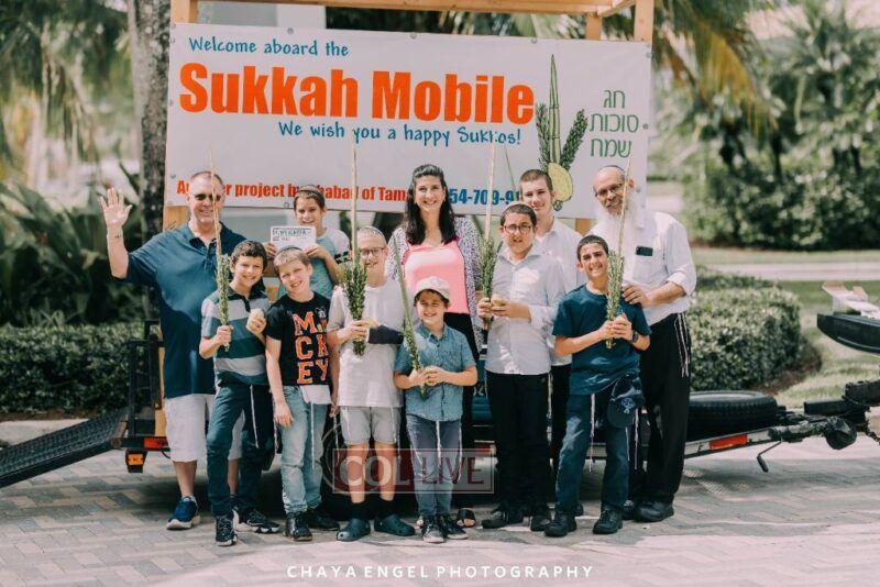 Thanks to the shluchim of Chabad of Tamarac – Rabbi Mendy and Chanie Engel and Rabbi Kopel and Goldie Silberberg – hundreds of Jews around the city had the chance to shake the lulav and esrog and even step into a sukkah on the go!