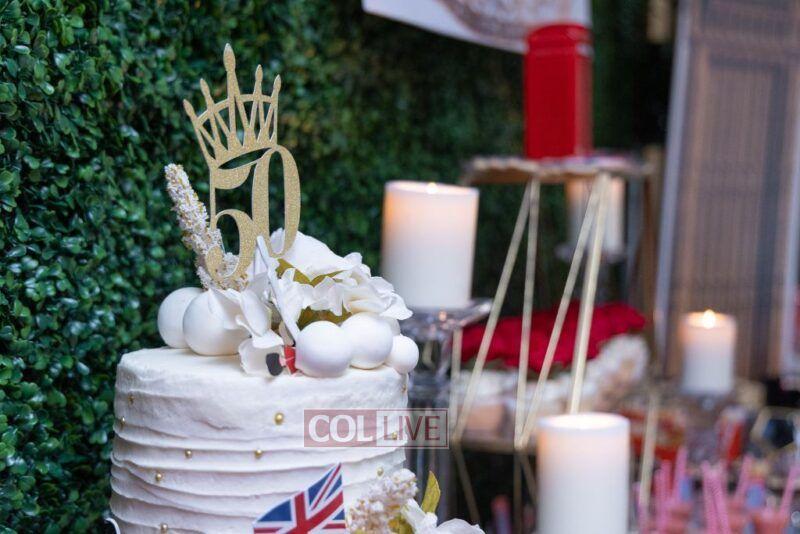 The English-themed party was complete with the Imperial Crown, Royal Robe with ermine fur, Royal Guards with bearskin hats, a fleet of Royal Cars, and honorary badges. There was also the Union Flag at full mast.