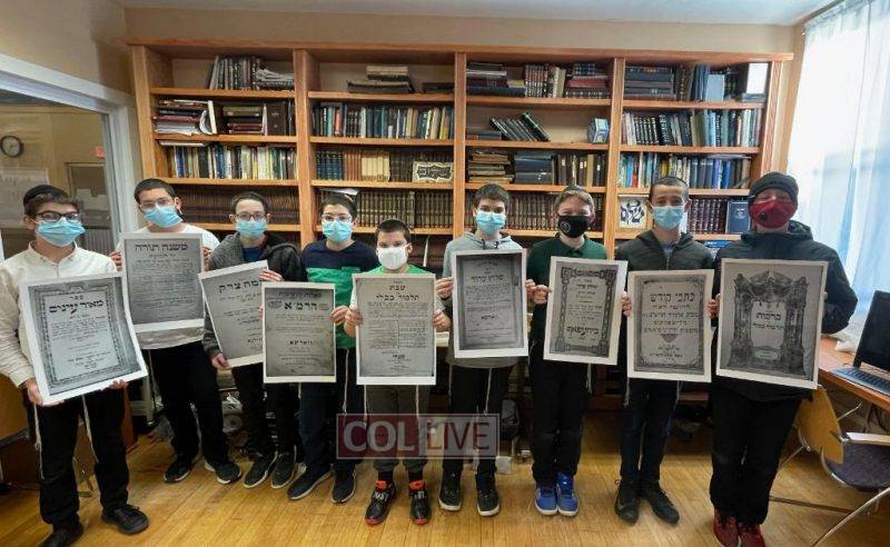 Preparing for the upcoming “Hey Teves Seforim Holiday,” students at Maimonides School in Albany, NY, have launched a unique “Title Page Project” scanning and scrutinizing the amazing front pages of a unique collection of crumbling brown-paged Seforim found in the school library’s old section.