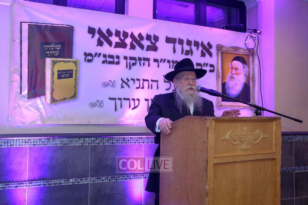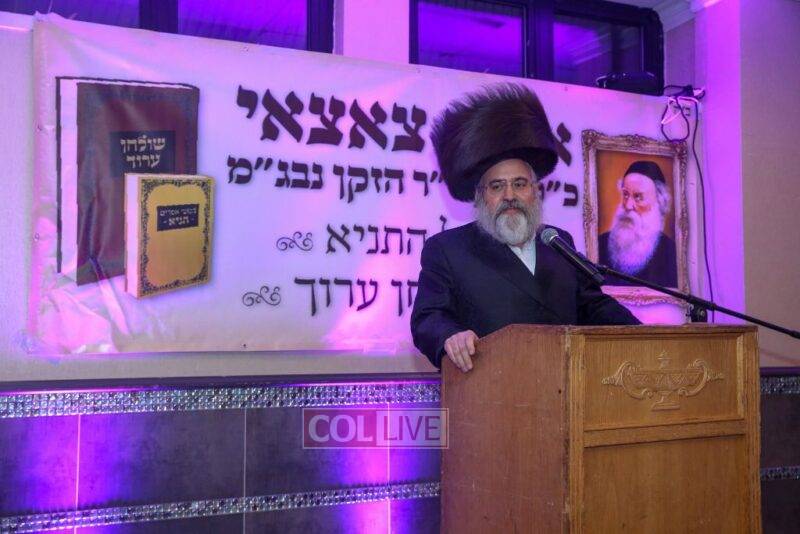 A siyum on the Alter Rebbe’s Shulchan Aruch was made by Rabbi Shlomo Segal, a Rov and a Dayan in Crown Heights and descendant of the Alter Rebbe’s son Reb Moshe. He read the final halacha, which discusses the laws of muzzling an animal while it is working. The Alter Rebbe rules that if one is taking muzzled animals from place to place, even if they tread upon grain and it gets threshed, he isn’t liable for muzzling them. This is because it was not his intention for them to thresh the grain. The Alter Rebbe concludes that the same applies in all similar situations.
