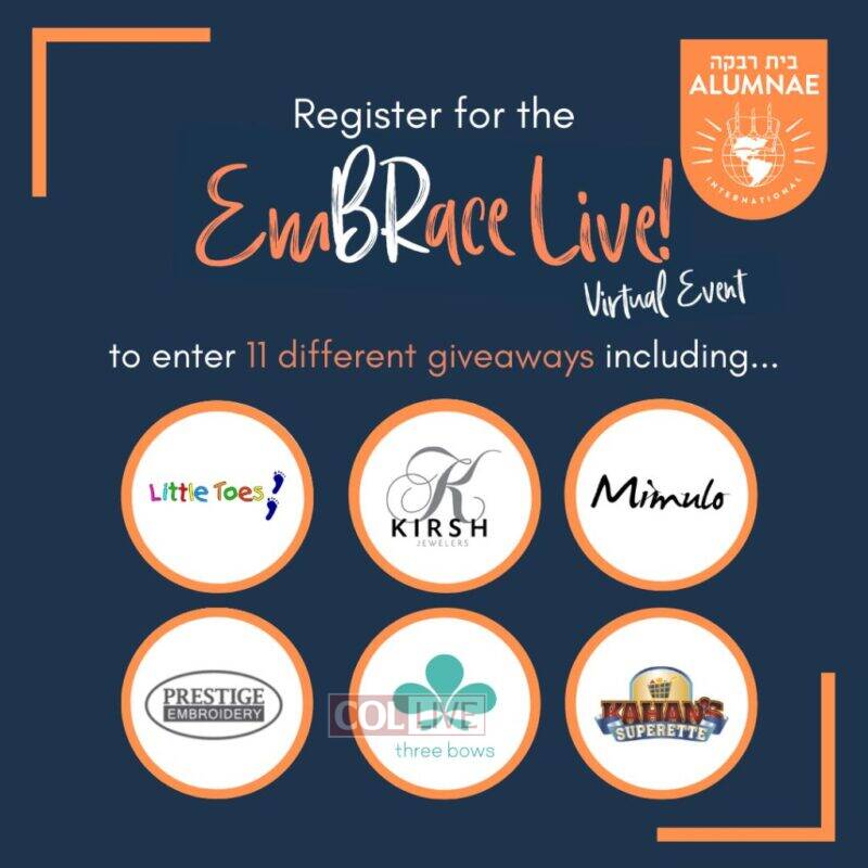 Registrations are pouring in by the hundreds and growing as Bais Rivkah alumnae around the world sign up for the grand Embrace Live Virtual Event happening this Sunday. Get ready to unite with your Bais Rivkah sisters for a beautiful evening full of nostalgia, music, inspiration and entertainment.