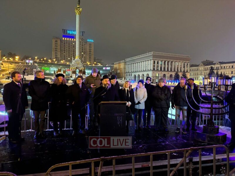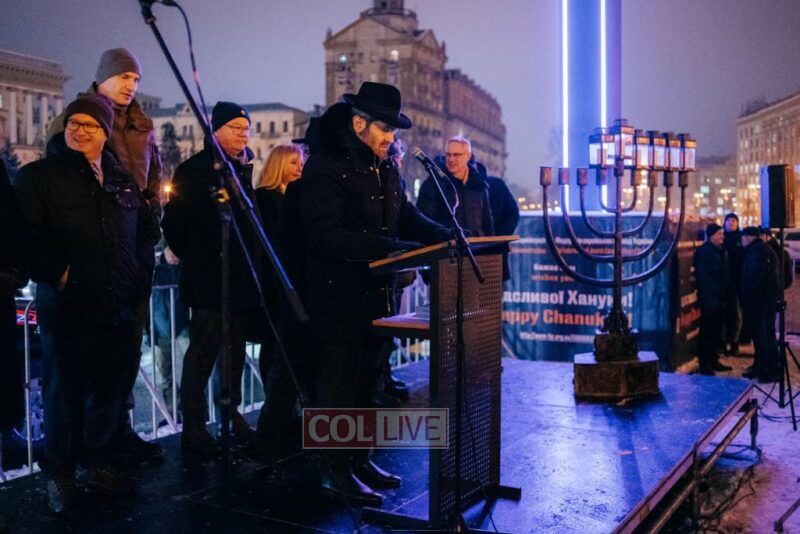 The lighting was arranged by the “Federation of Jewish Communities in Ukraine”, and its Vice Chairman Rabbi Raphael Rutman, who organizes the event every year and is also responsible for a series of public lightings in Kyiv every evening of Chanukah, pointed out that in light of the continuing war in Ukraine, it was ever MORE important to gather together on Chanukah and spread it’s message of light and tolerance vanquishing darkness and evil.