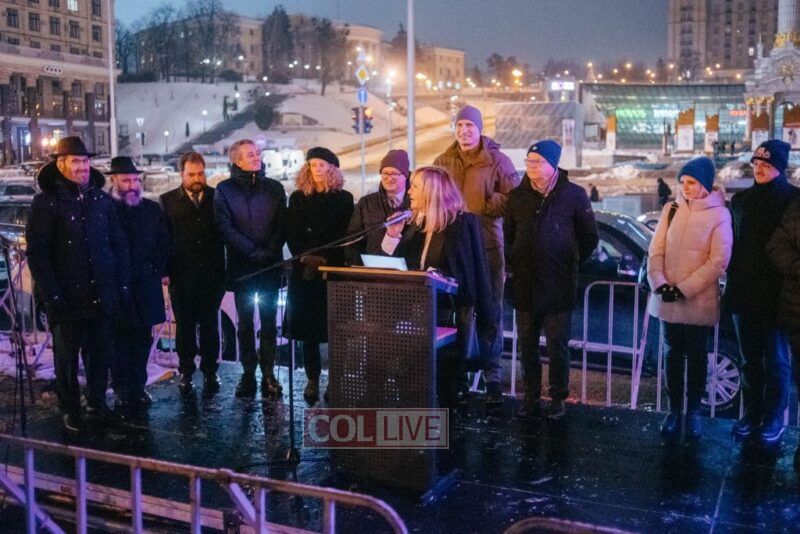 Every night of Chanukah 2023, ambassadors to Ukraine from many countries all over the world came to participate in the lighting of the Menorah, among them the ambassadors of the USA, Canada, Italy, Austria, France, Germany, Argentina, Great Britain, Switzerland, Finland, Slovenia and Sweden. The mayor of Kyiv, Vitaly Klitschko and various Ukrainian dignitaries were also in attendance, as well as the Head of the EU Delegation to Ukraine, the Head of the UN Delegation to Ukraine and the Head of Nativ in Israel.