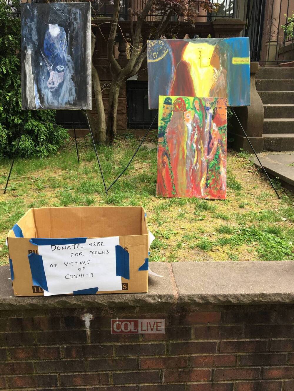 To bring further purpose to his exhibition, Freedman placed a charity box near his art to collect funds for families of coronavirus victims. He also hands out cards promoting the Seven Noahide Laws when he’s outside and seeing people pass by.