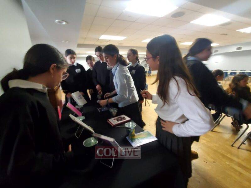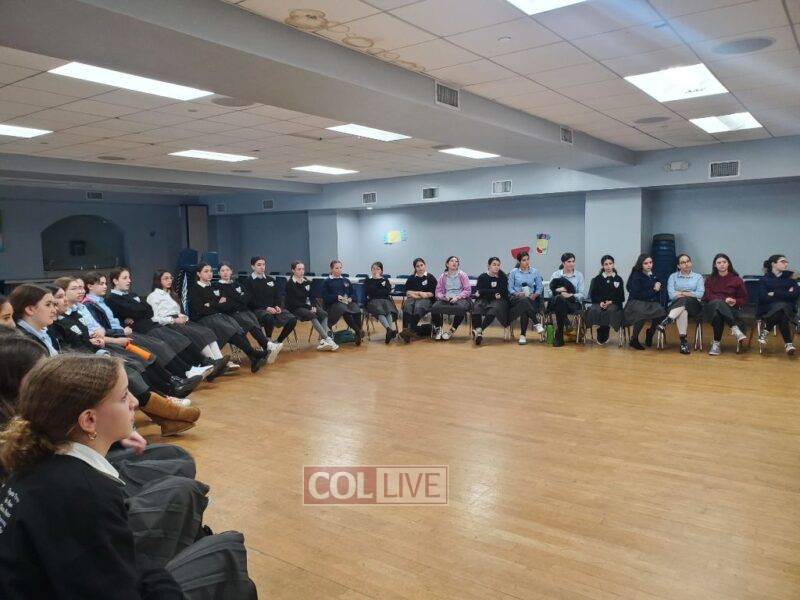 The girls had the opportunity to ask questions of Mr. Lewin and they all participated in an auction organized by the mechanchos, Mrs. Geula Newman and Mrs. Chaya Schapiro for new seforim in honor of the release of the Rebbe’s sefarim from Russia.
